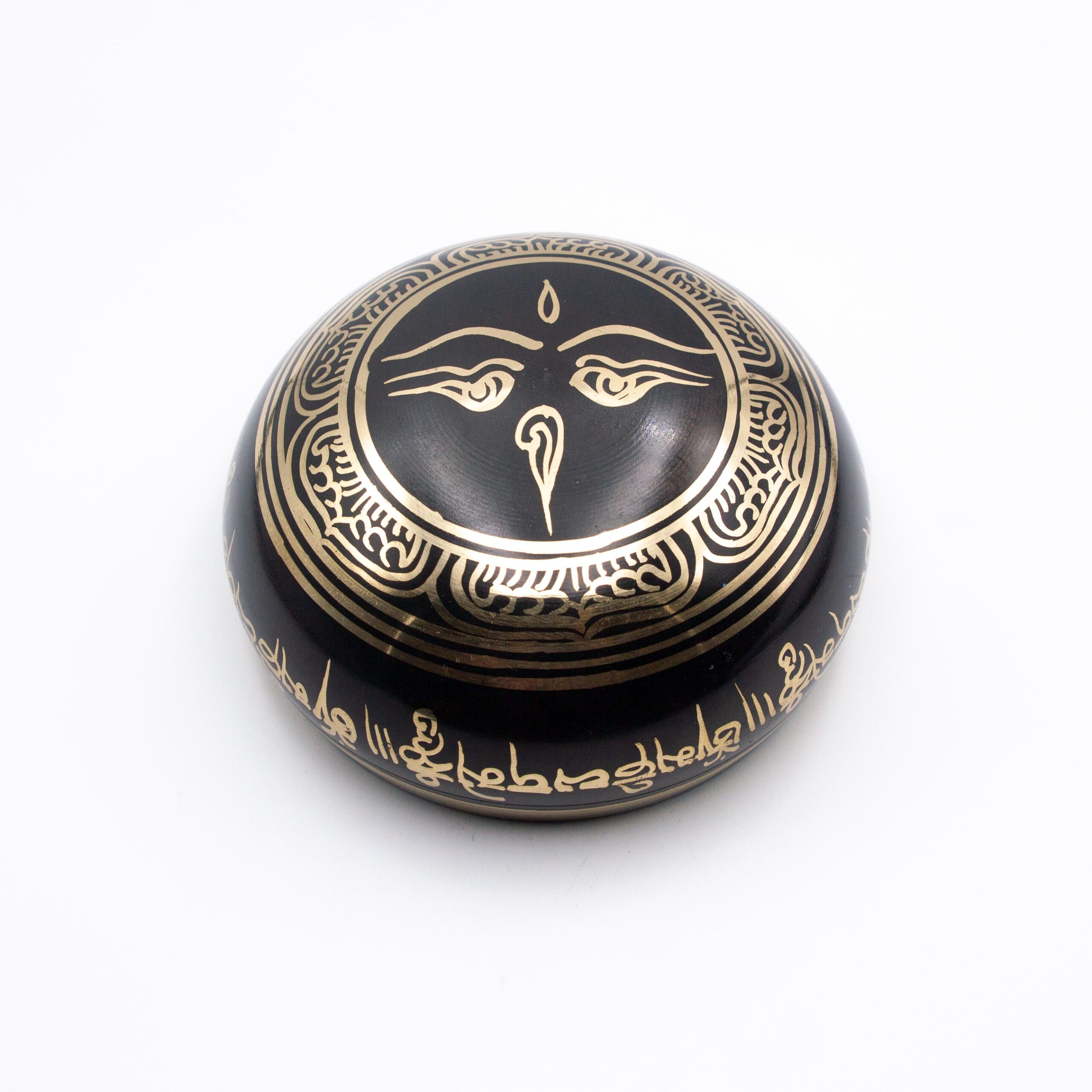 Authentic Himalayan Eye of Buddha Singing Bowl Single Set Black Pattern Handcrafted