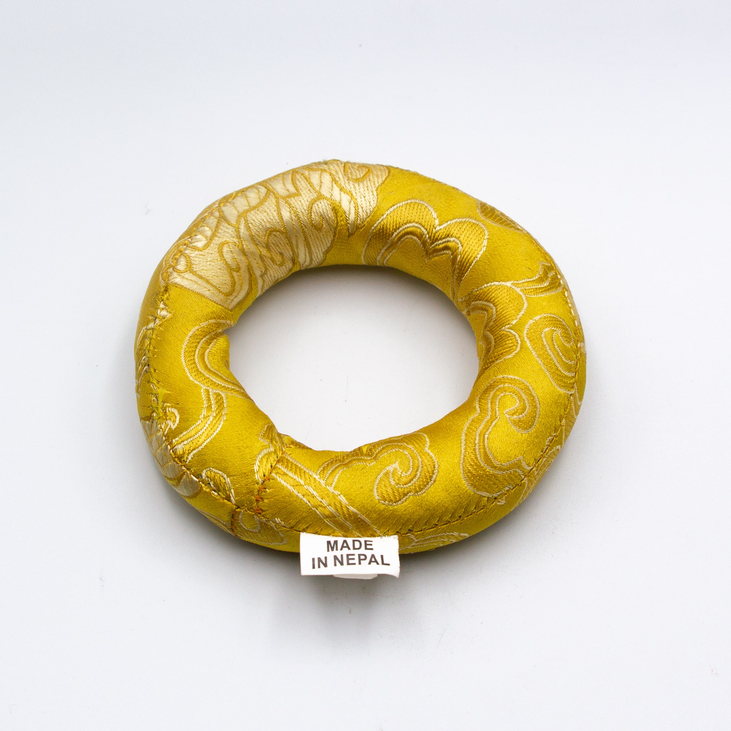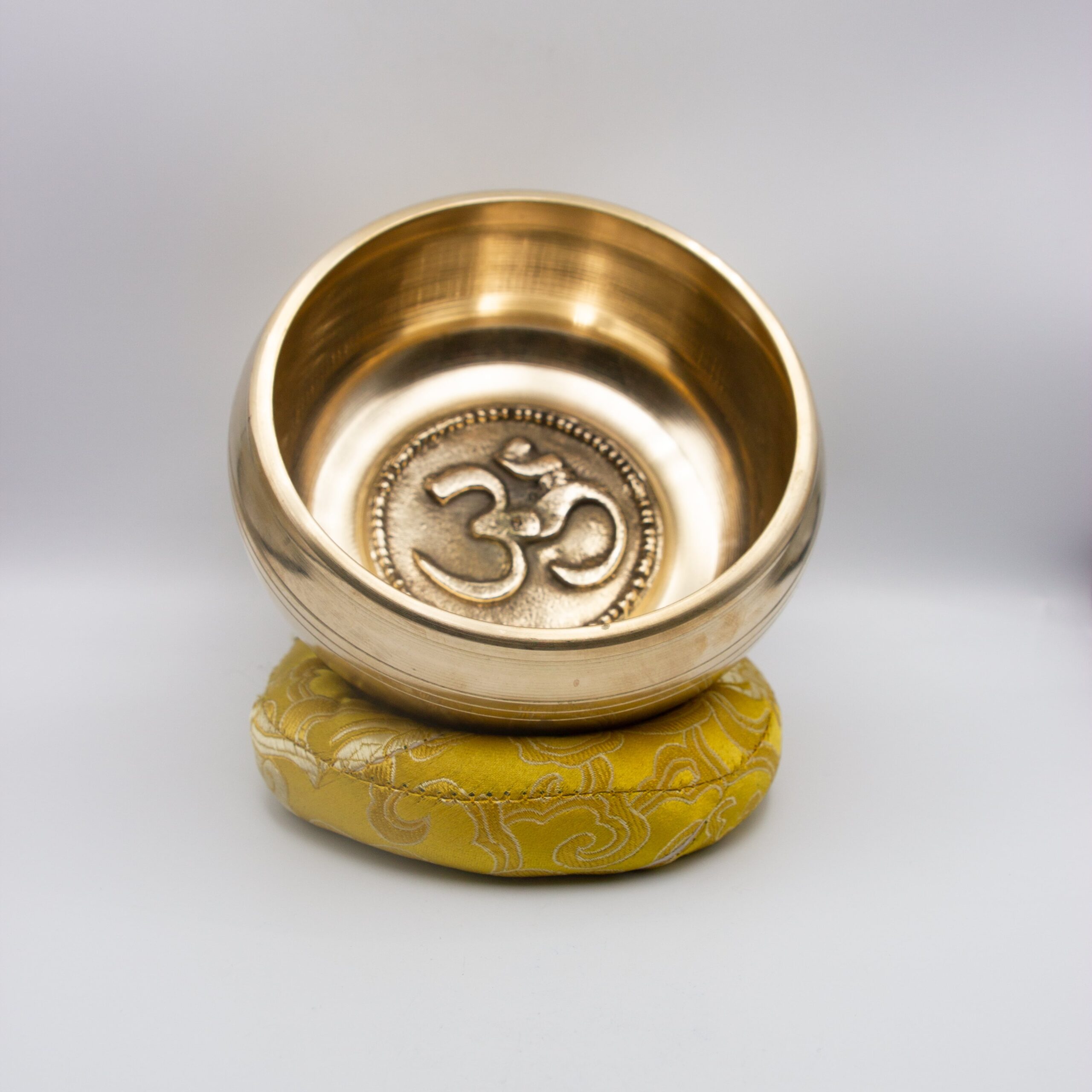 Elevate your spiritual practice with the Authentic Himalayan Golden Shining OM Singing Bowl Set, meticulously handcrafted in Nepal. This exquisite single set includes a beautifully embossed OM symbol at the centre of the bowl, symbolizing universal vibration and spiritual connection. Weighing 594 grams, this singing bowl is accompanied by a traditional wooden striker and a vibrant silk cushion, ensuring stability and ease of use.