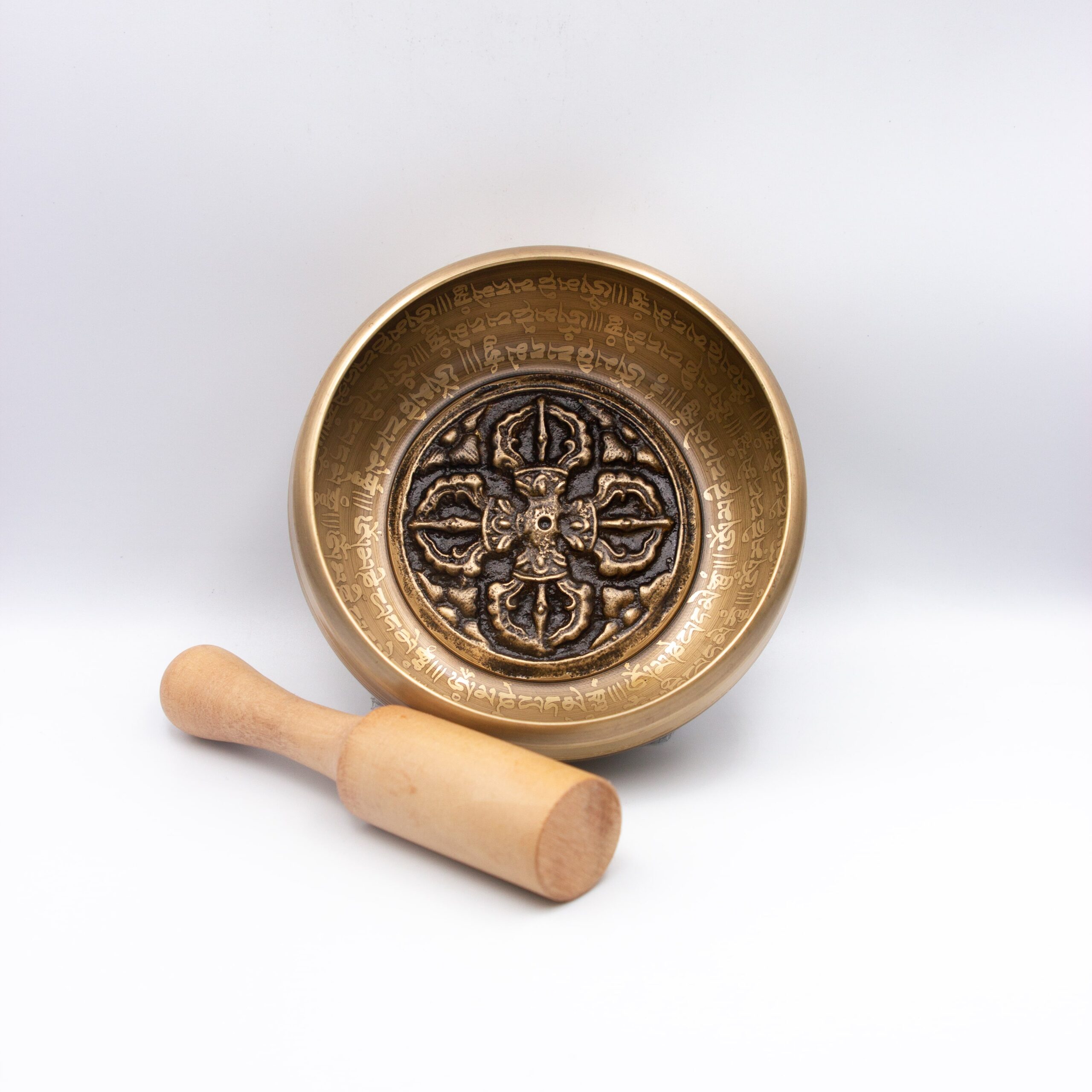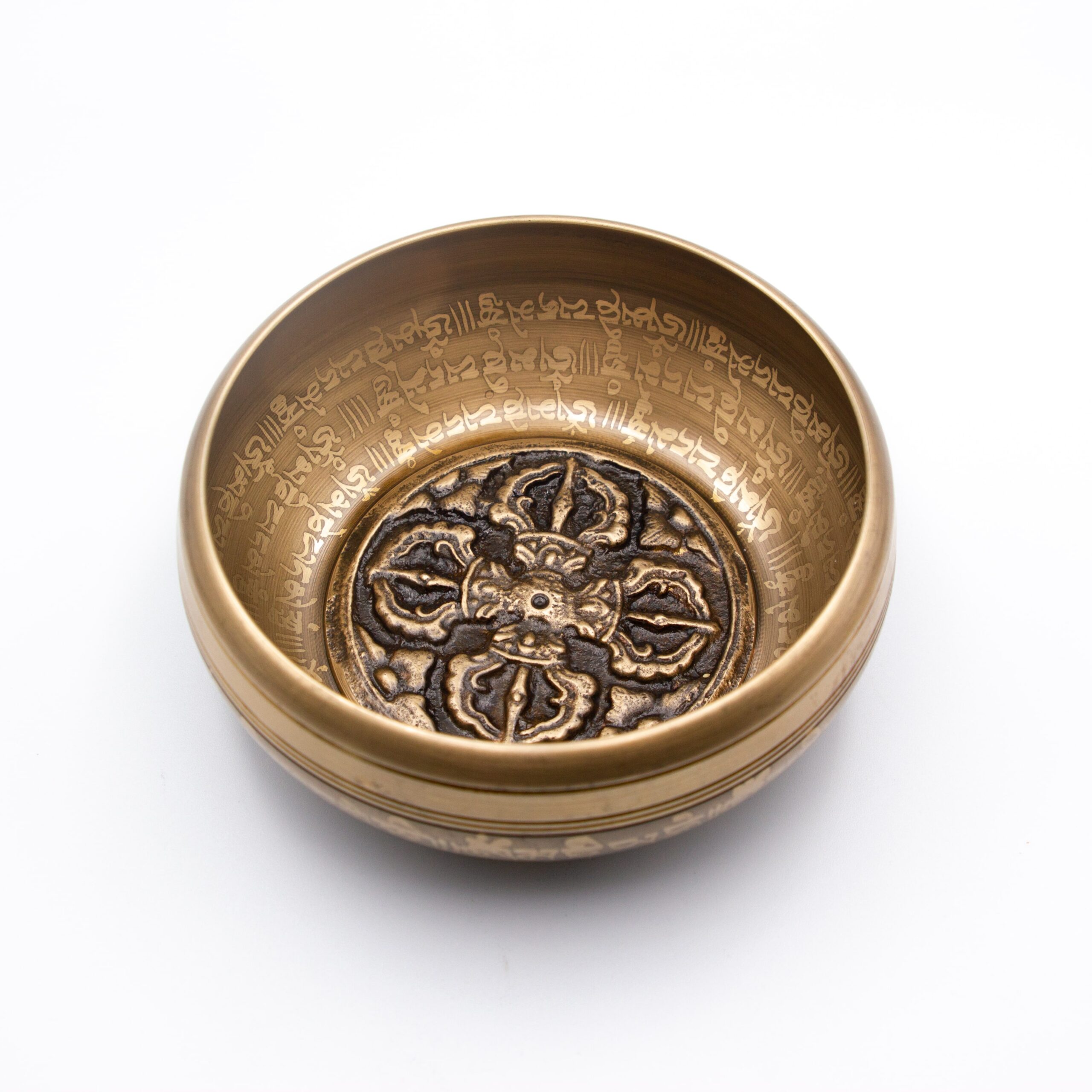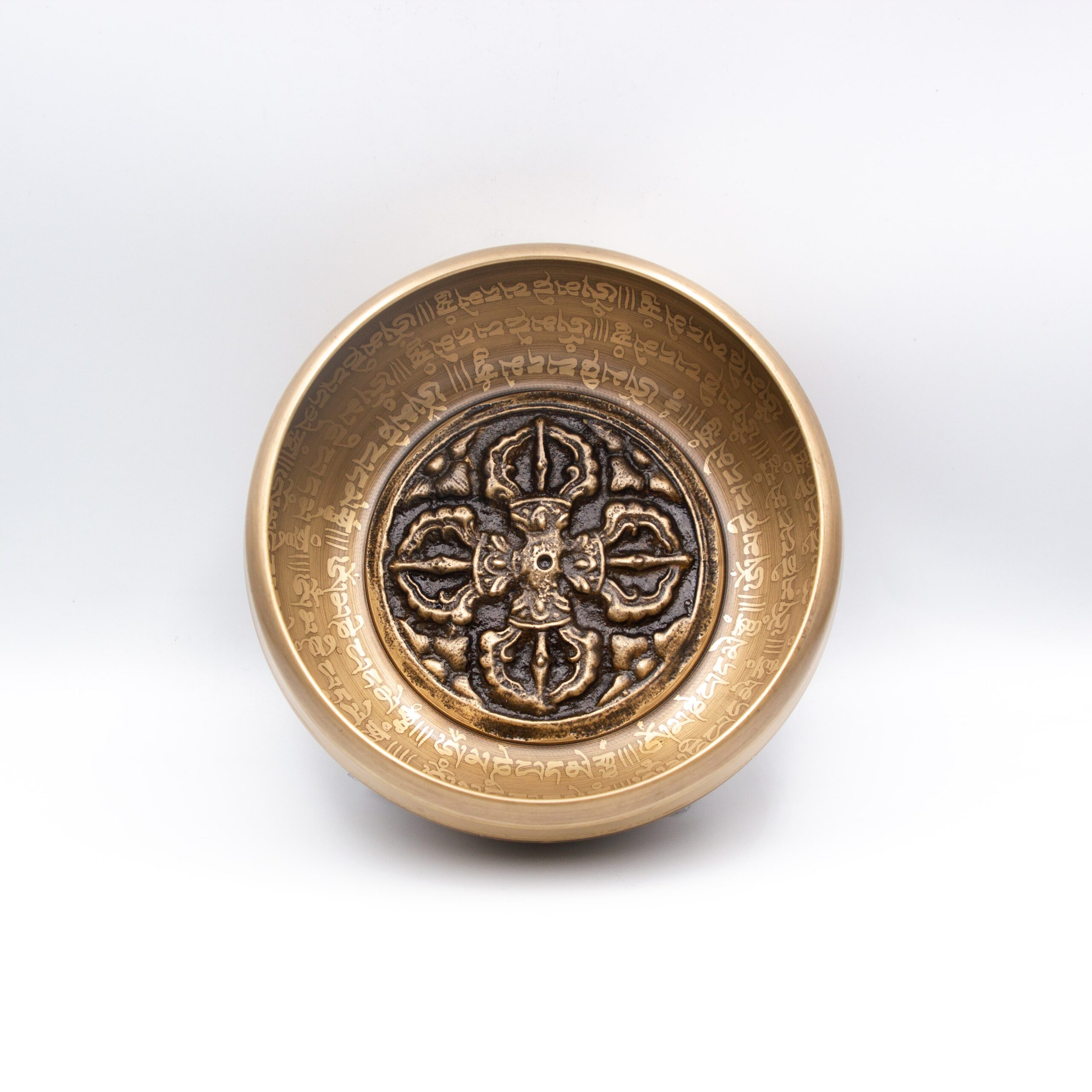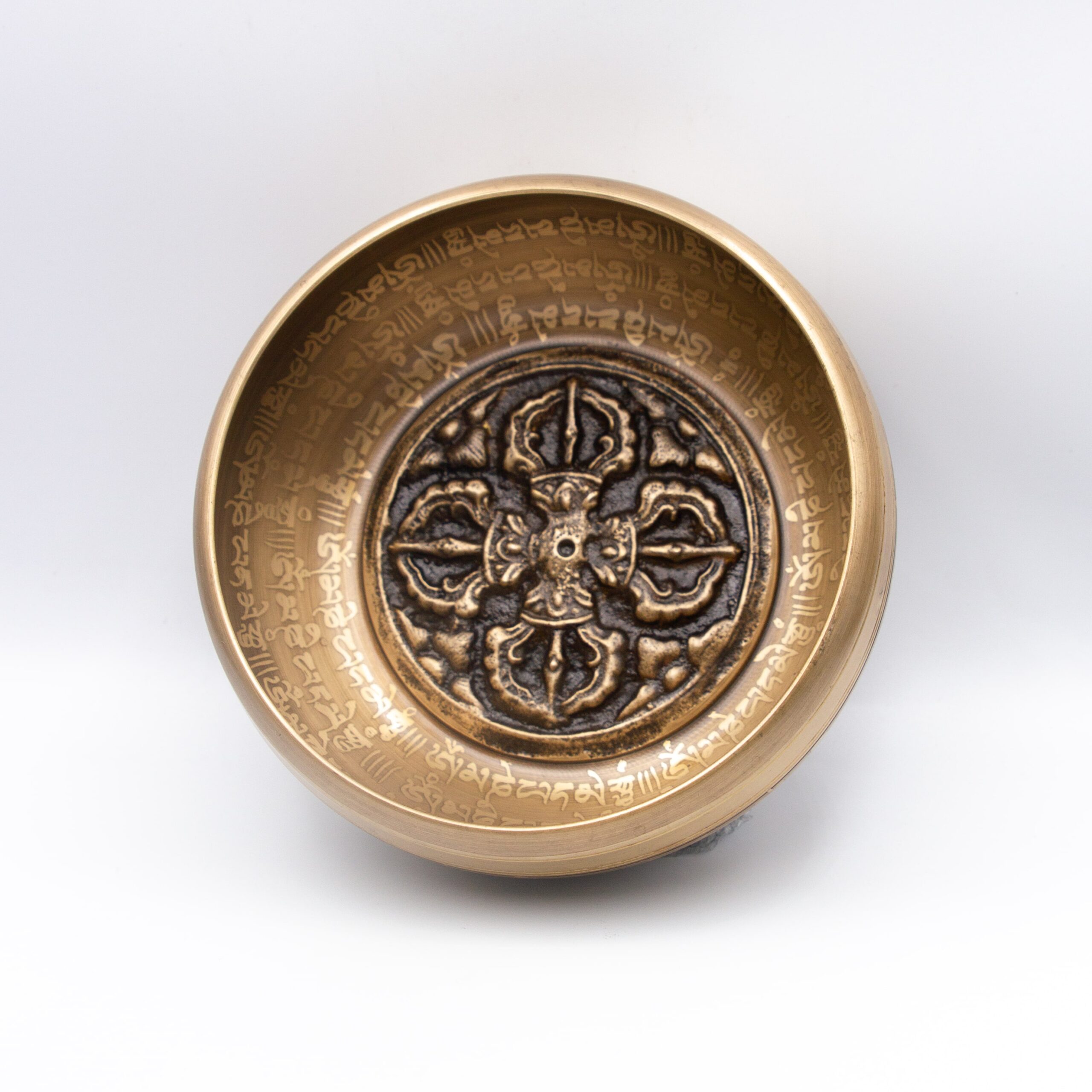 The Vajra is a significant symbol representing indestructibility, power, and spiritual authority. It symbolizes the unbreakable and indestructible nature of reality and is often associated with meditation and rituals. The Vajra design inside the bowl adds a layer of spiritual significance and enhances the bowl’s aesthetic and symbolic value.