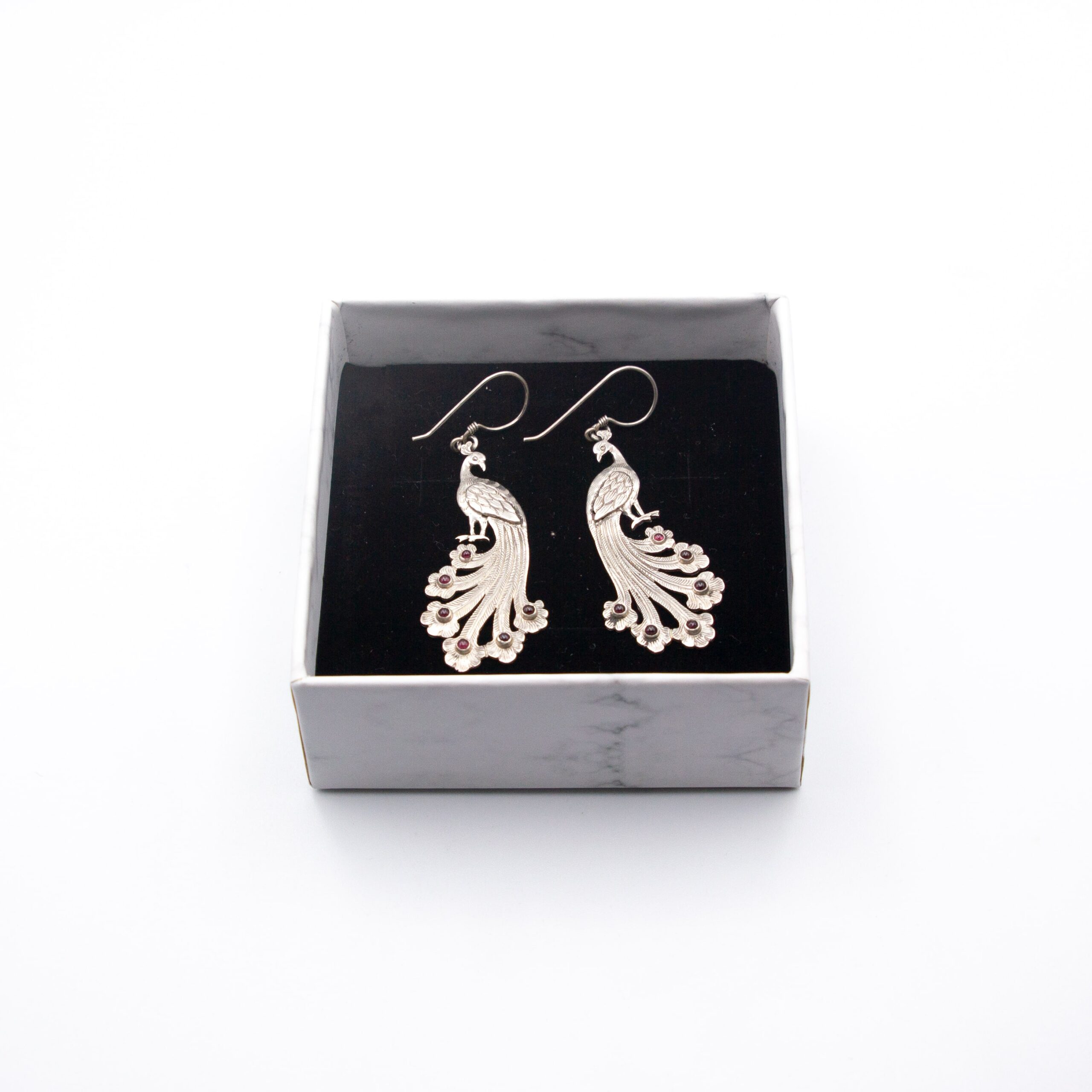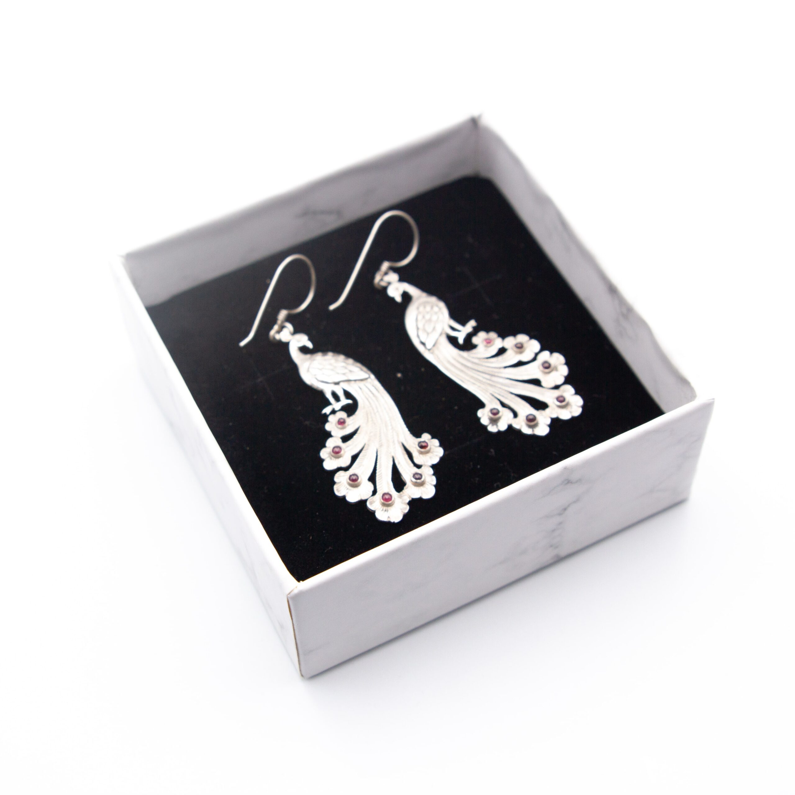 Be the first to review “Exquisite 925 Silver Peacock Design with Red Carnelian Crystals Pair of Earrings”