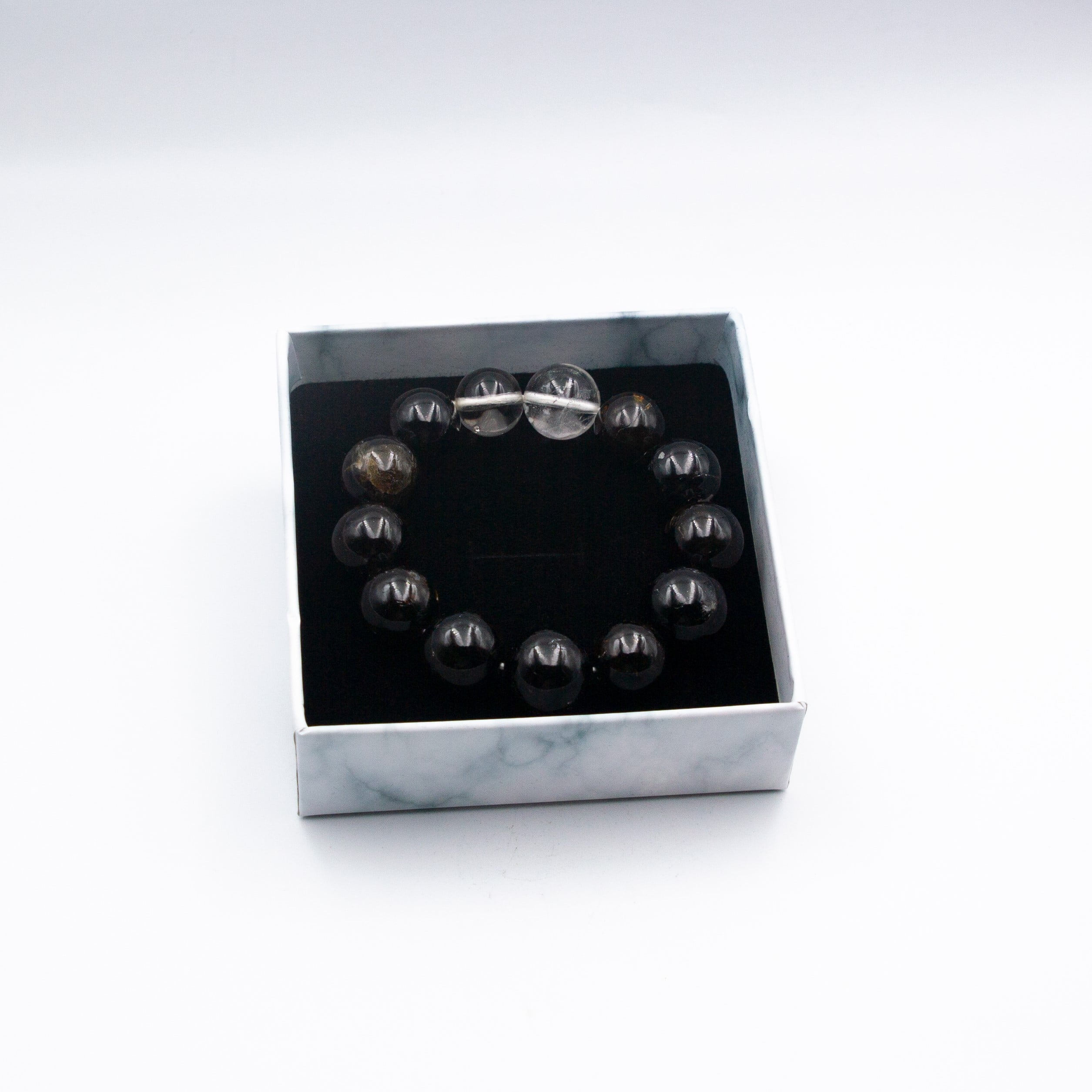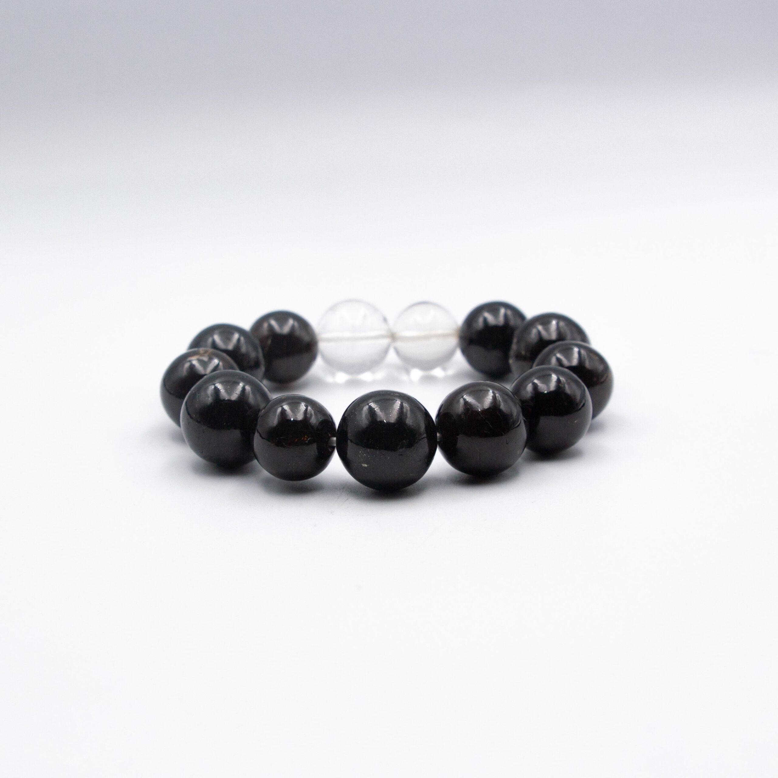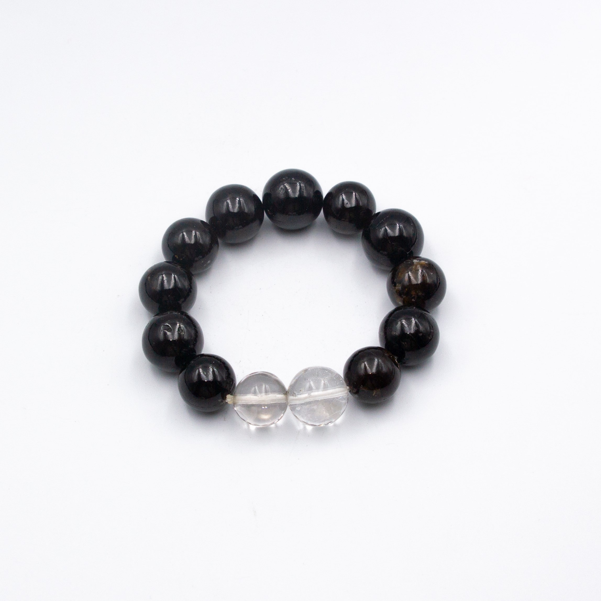 Each bracelet is a testament to the raw beauty and power of nature, featuring genuine Black Tourmaline and Clear Quartz crystals meticulously handpicked from the Himalayan terrain. Black Tourmaline is revered for its protective properties, shielding the wearer from negative energies, while Clear Quartz amplifies clarity and positive energy flow.