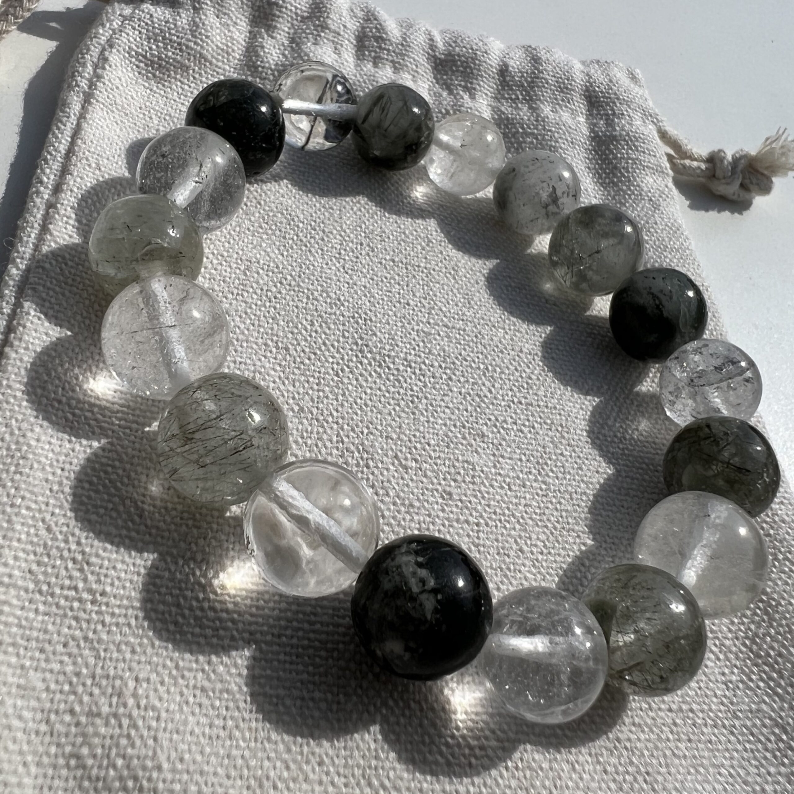 Introducing our Mount Makalu Natural Himalayan Nepal Clear Quartz Crystal and Chlorite Crystal Bracelet! Straight from the heart of the Himalayas in Nepal, this bracelet features 12mm natural quartz crystals and chlorite crystals, sourced directly from the Gunihang mine in Sankhuwasabha.