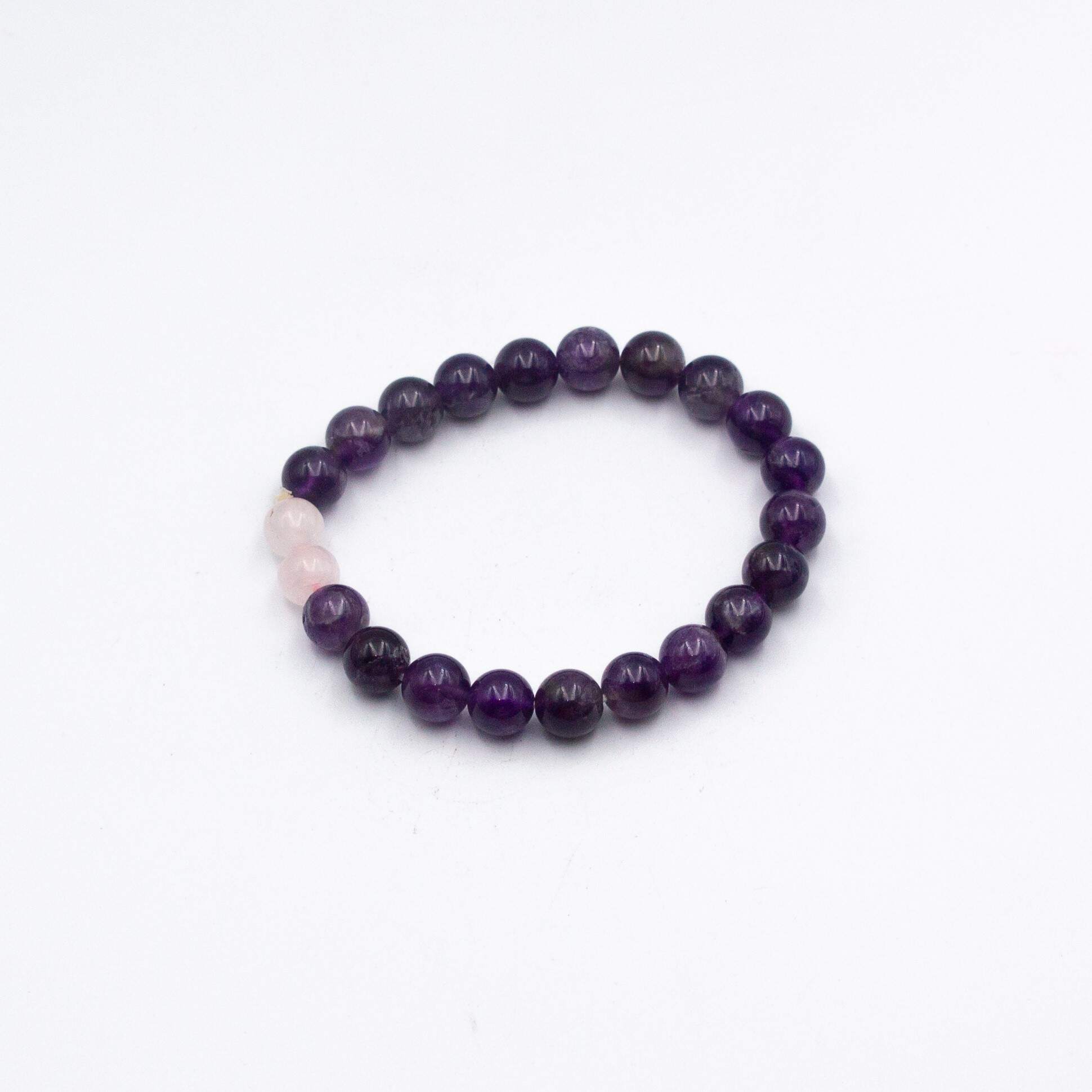 Crafted from authentic Amethyst and Rose Quartz crystals, each bead measures a delicate 8mm, ensuring a perfect balance of style and comfort.