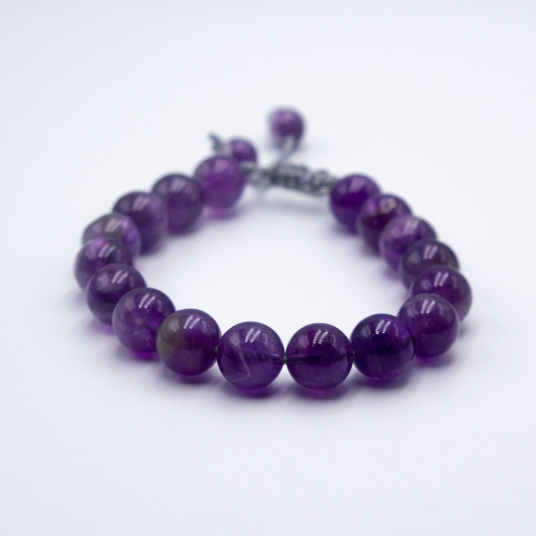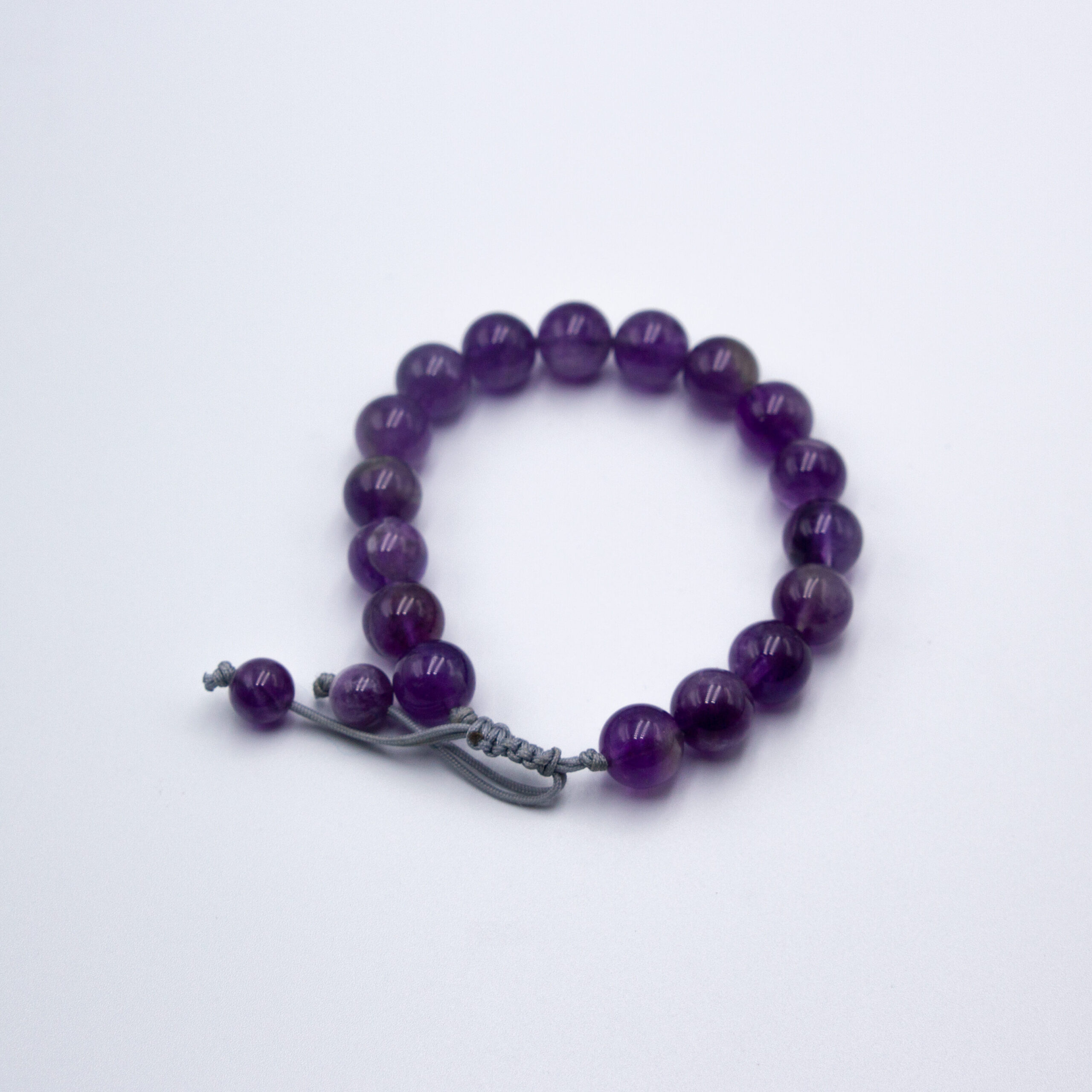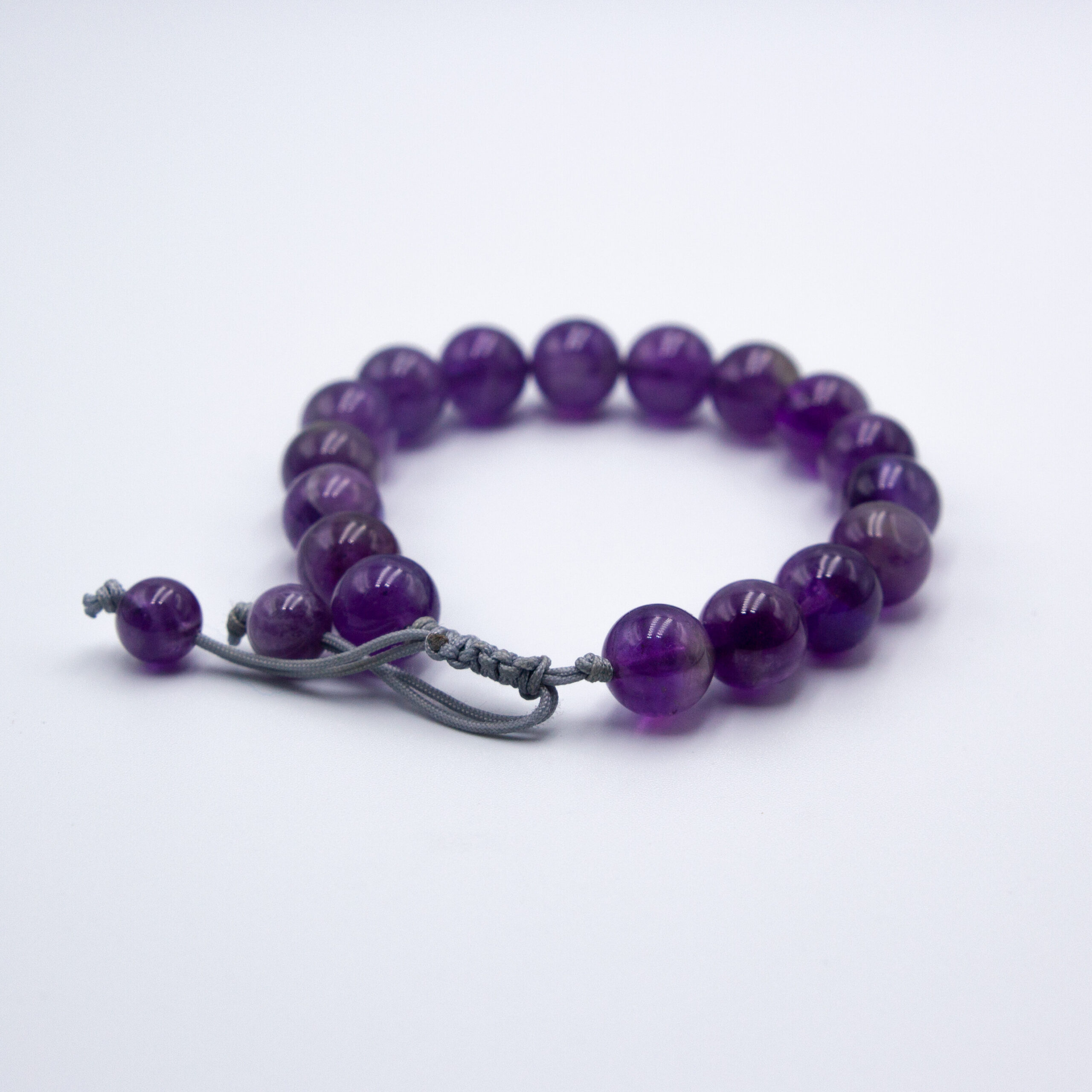 The Natural Amethyst Crystal Bracelet (10mm beads) with threads is a beautiful fusion of elegance and healing power. Crafted from genuine amethyst crystals, this bracelet is designed to bring peace, spiritual awareness, and inner strength. Each bead is carefully polished and strung on a durable threaded design, offering both comfort and durability for everyday wear.