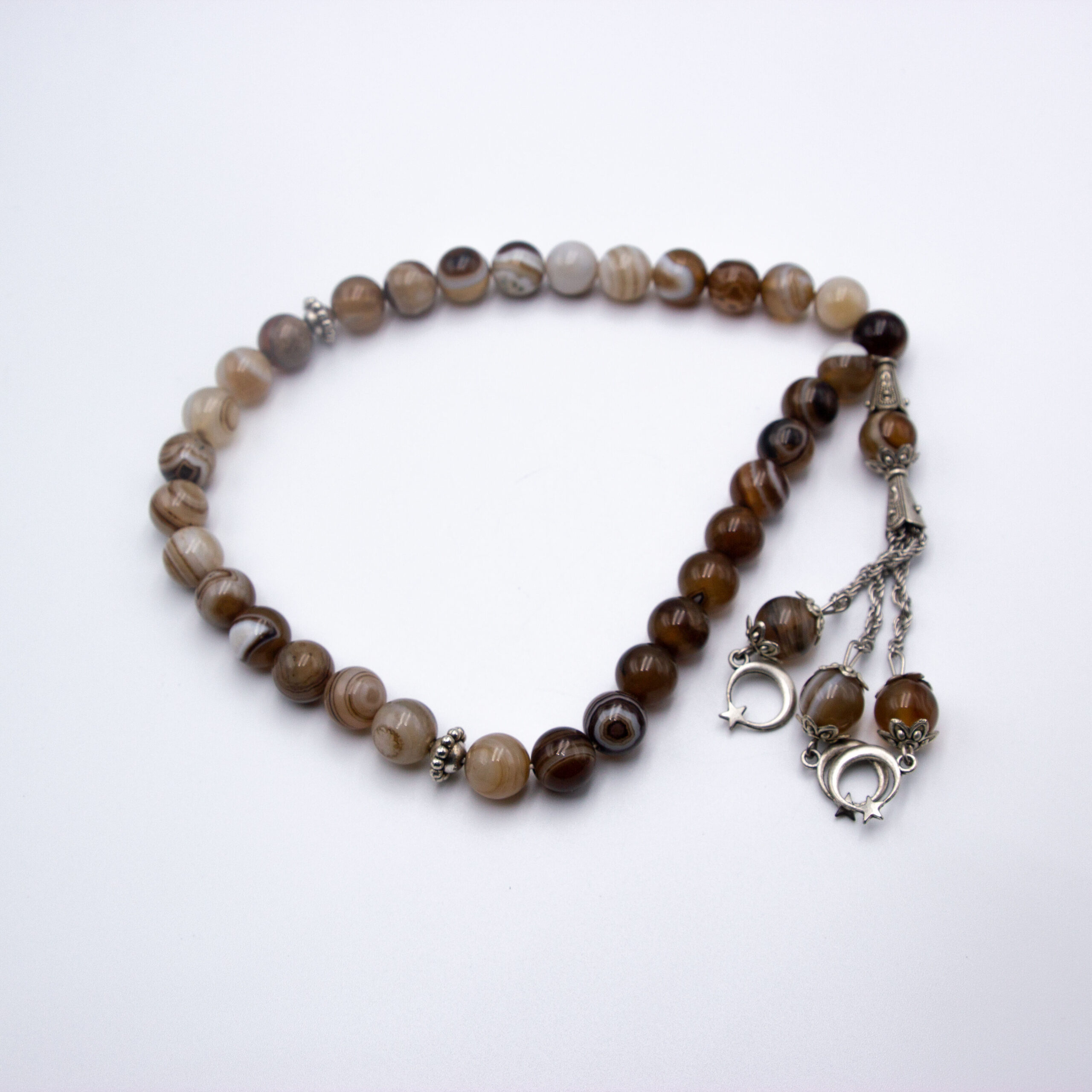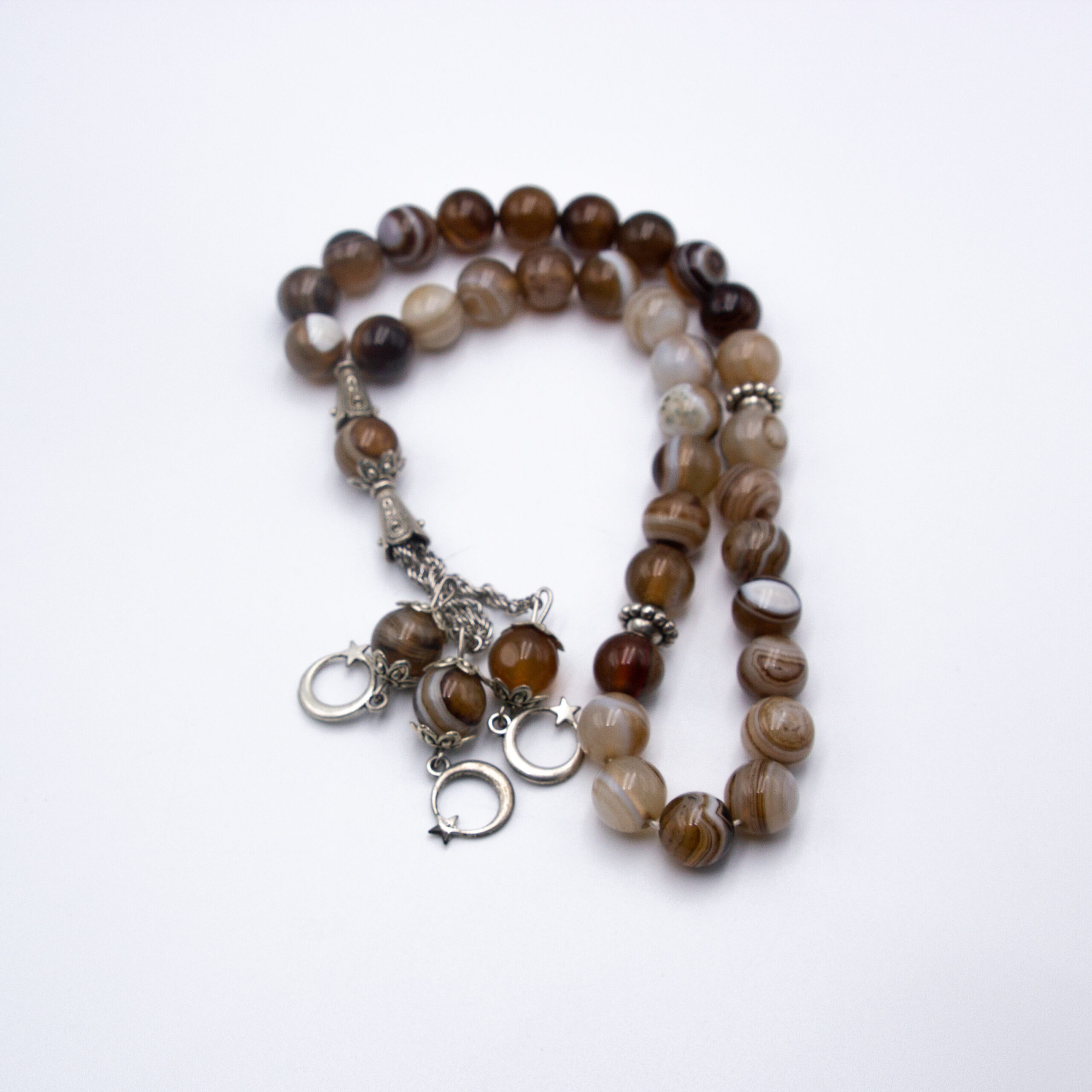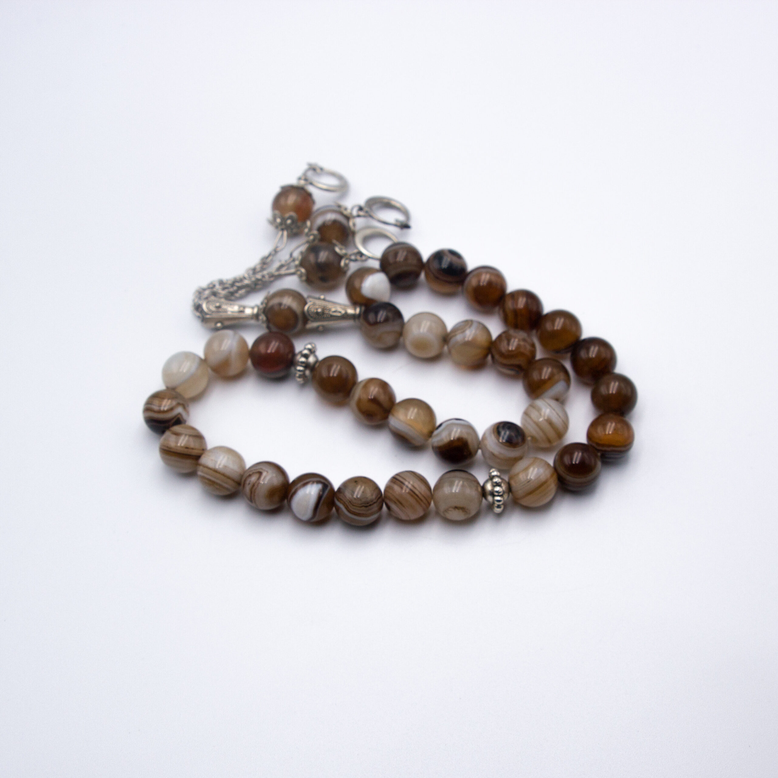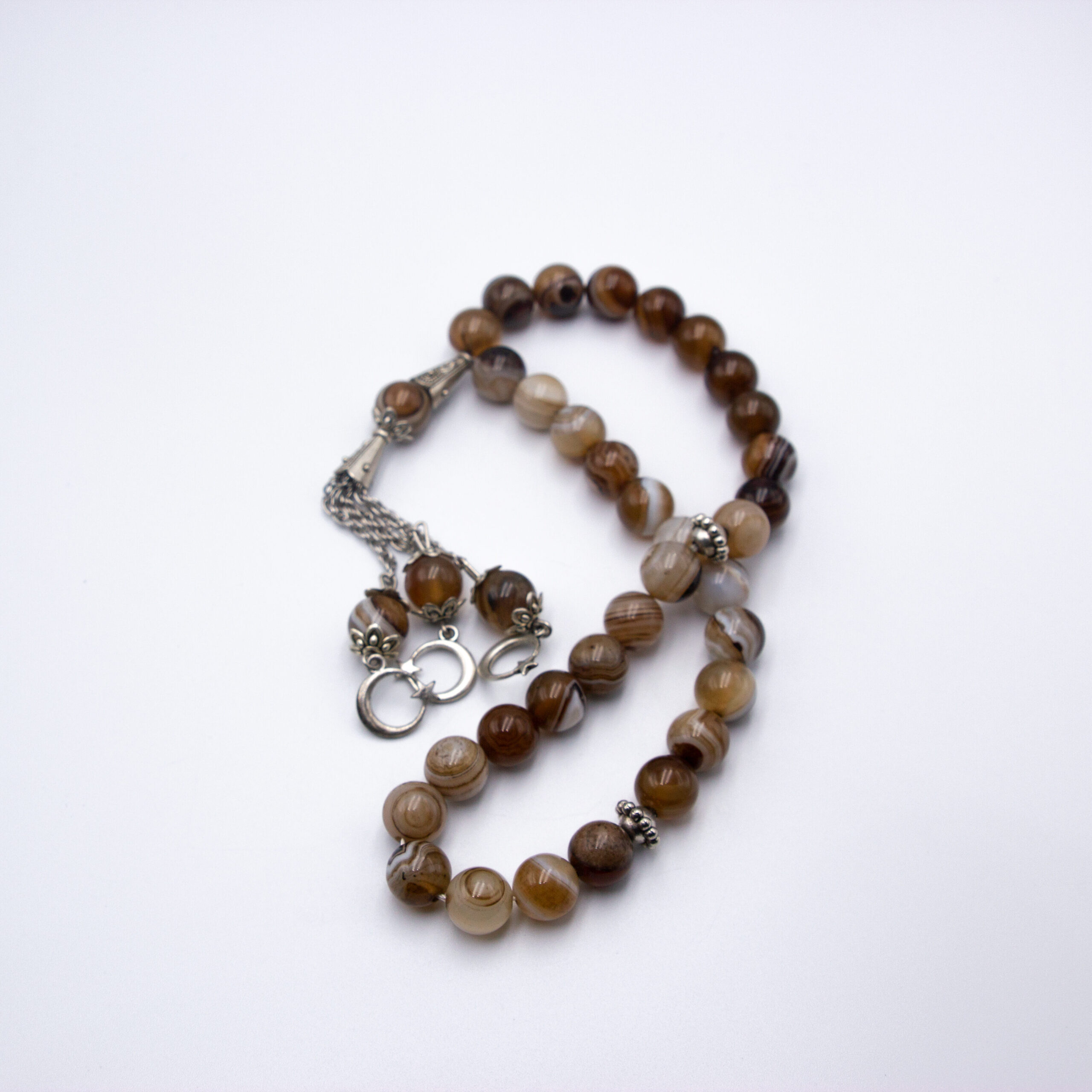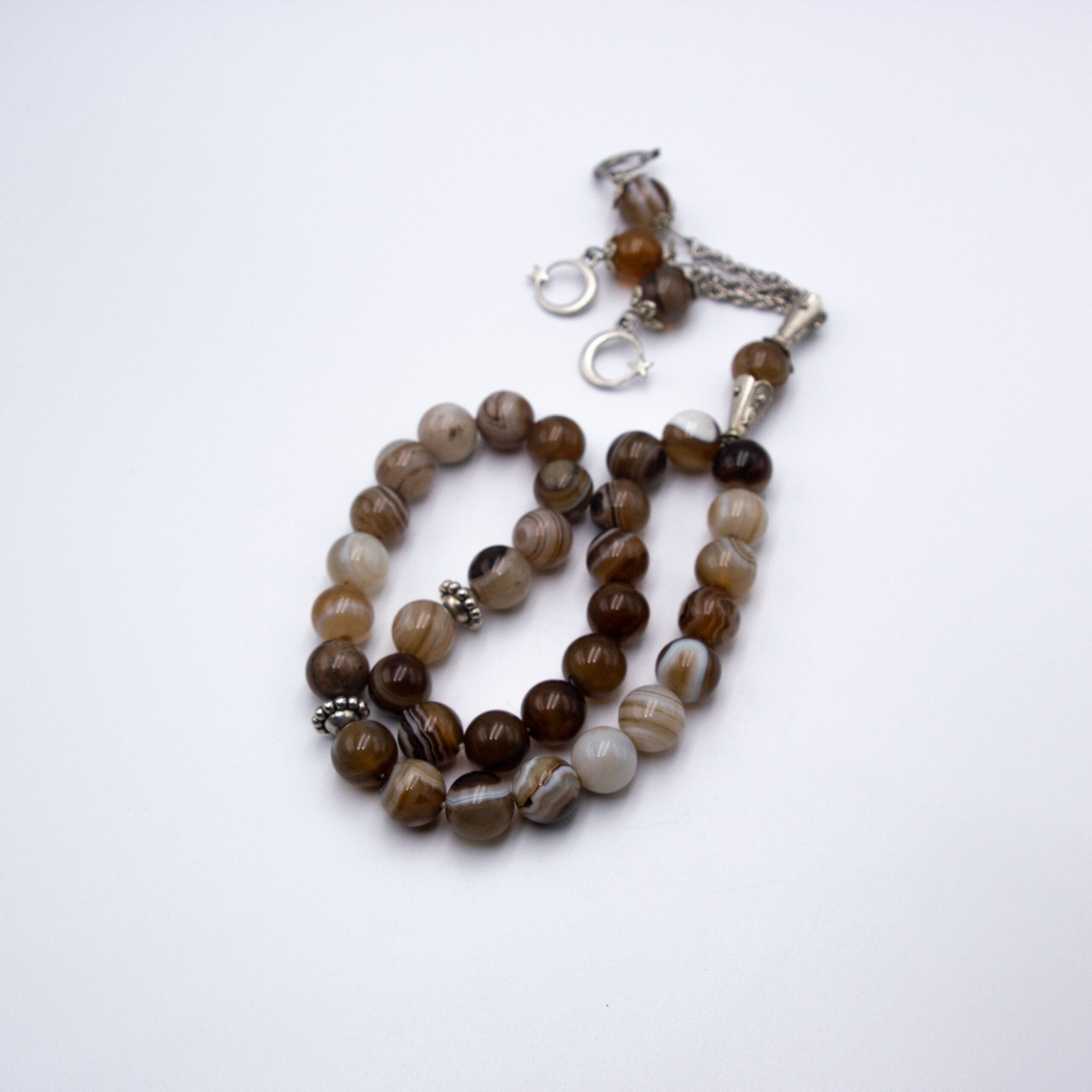 Natural Brown Agate Crystal Tasbih Prayer Beads (10mm – 33 beads)
