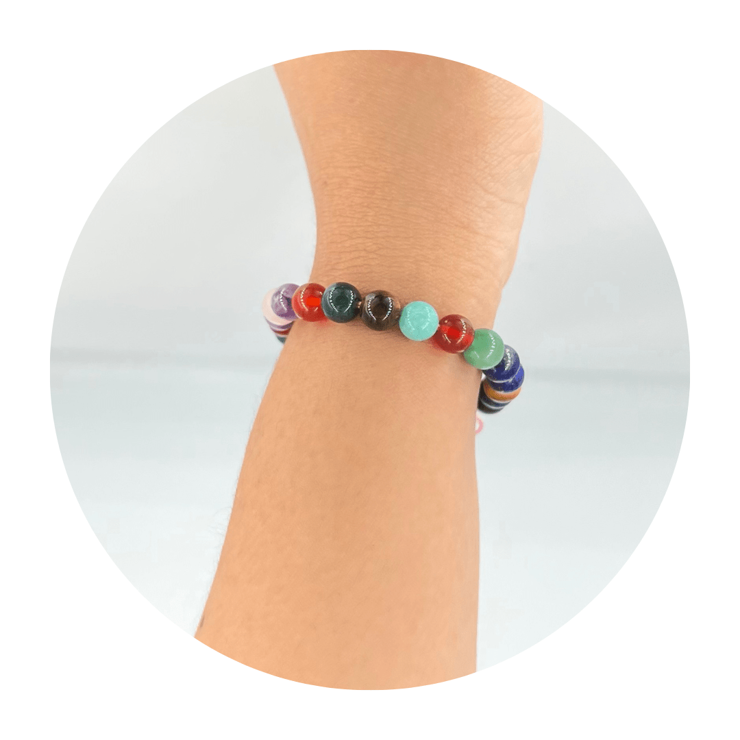 Crystal Stones used to create this crystal are – Amethyst, Lapis Lazuli, Carnelian, Amazonite, Tiger eye, Rose Quartz, Green Aventurine, Moss Agate