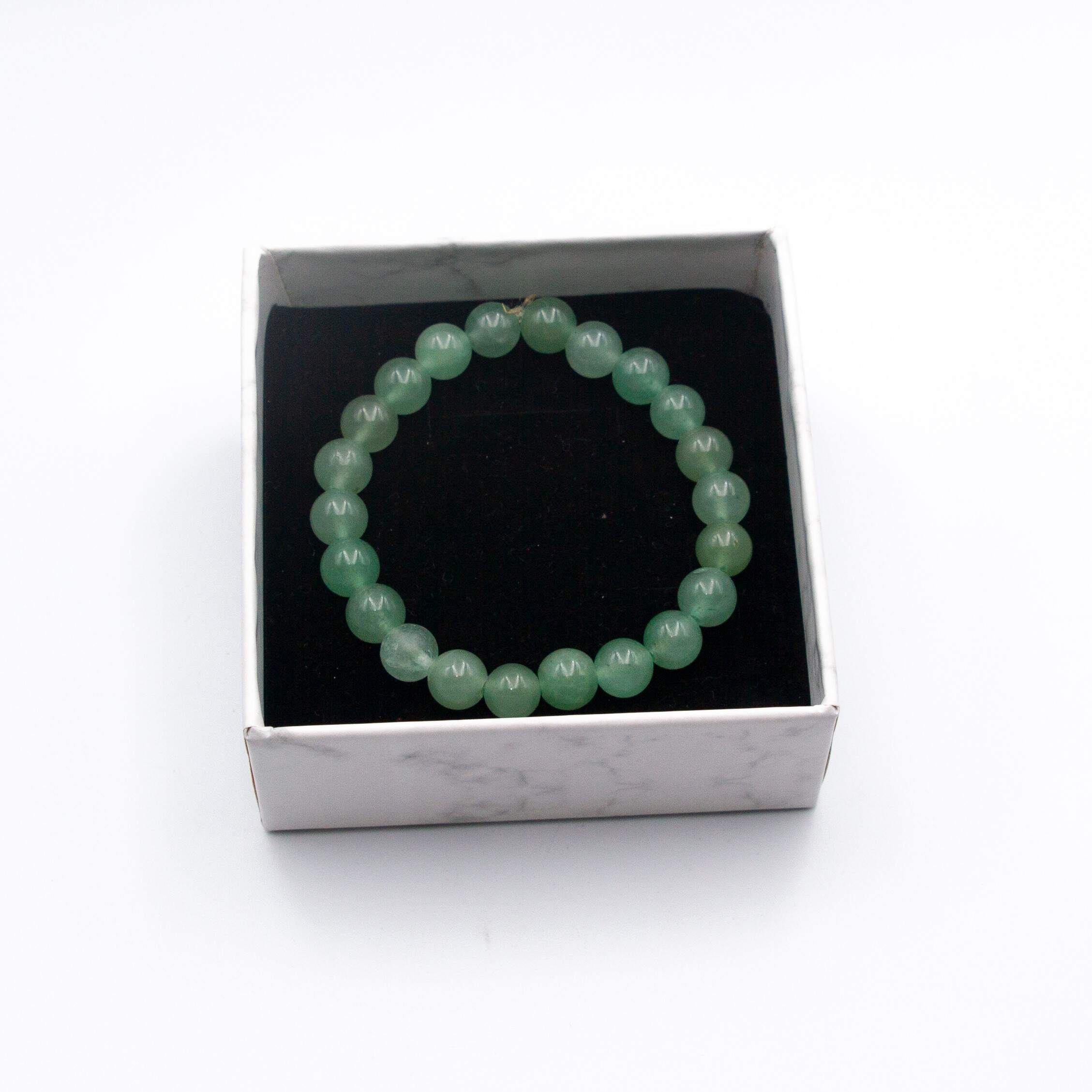 Each bead is made from genuine natural Green Aventurine, polished into smooth 8mm rounds and carefully strung on a durable elastic cord. Its simple yet elegant design makes it suitable for both men and women, whether worn as a healing crystal bracelet or as a fashionable everyday accessory.