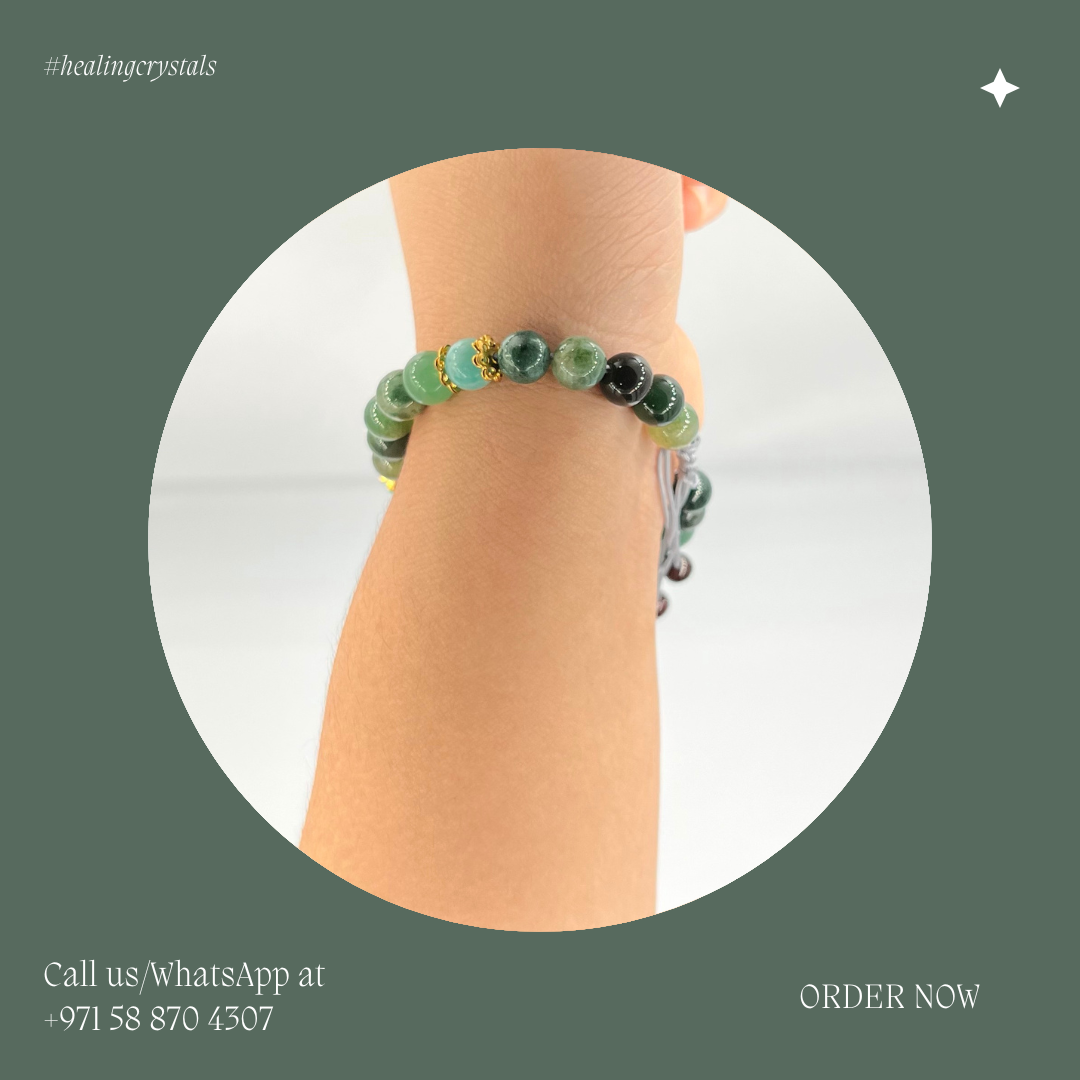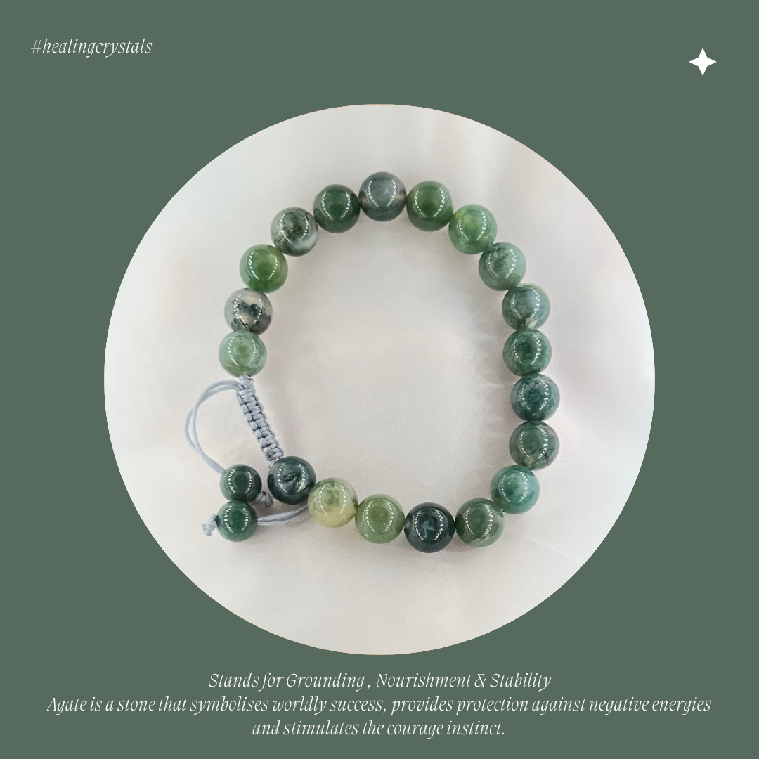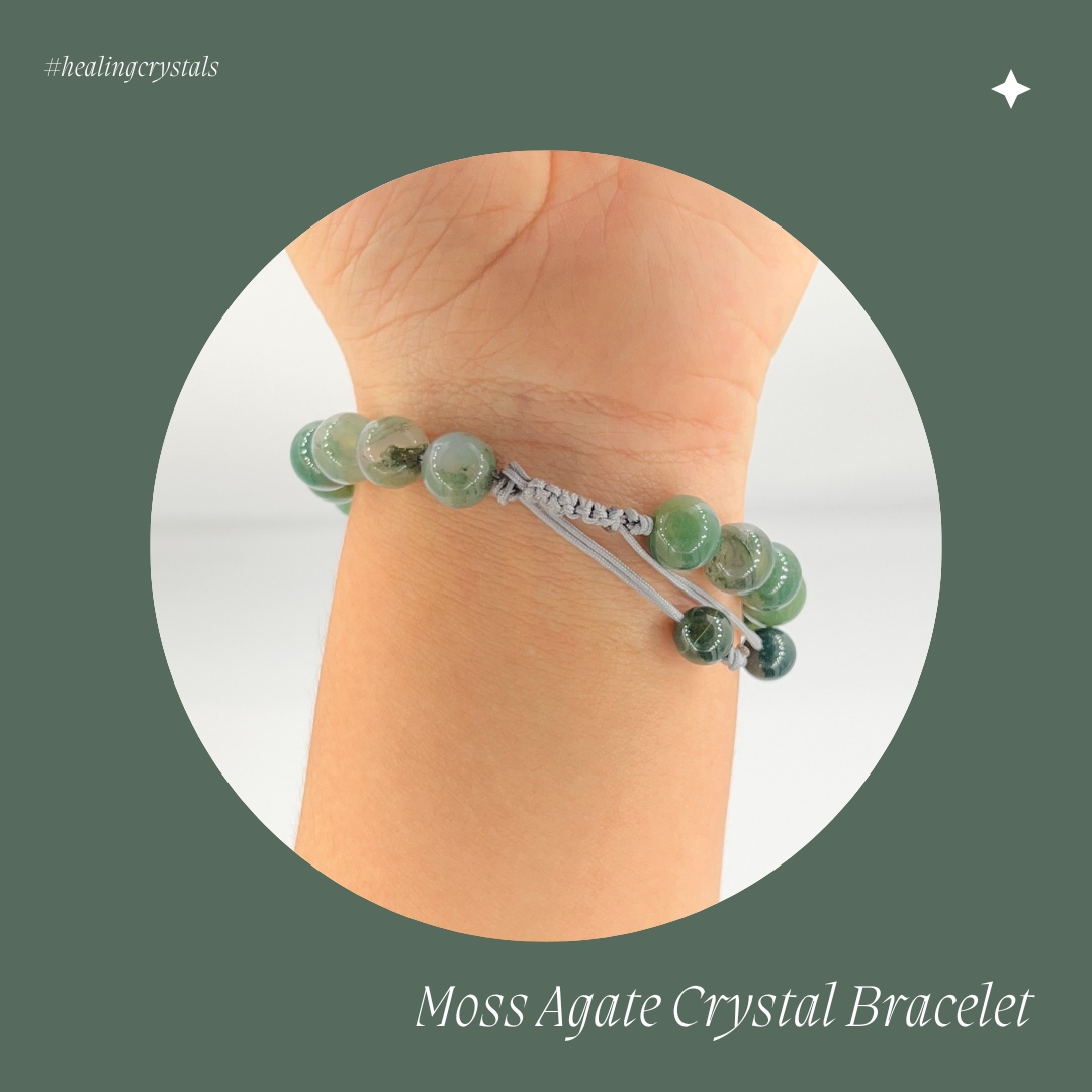 Embrace the soothing energy of nature with our Natural Moss Agate Crystal Bracelet and experience the harmony it brings to your life.