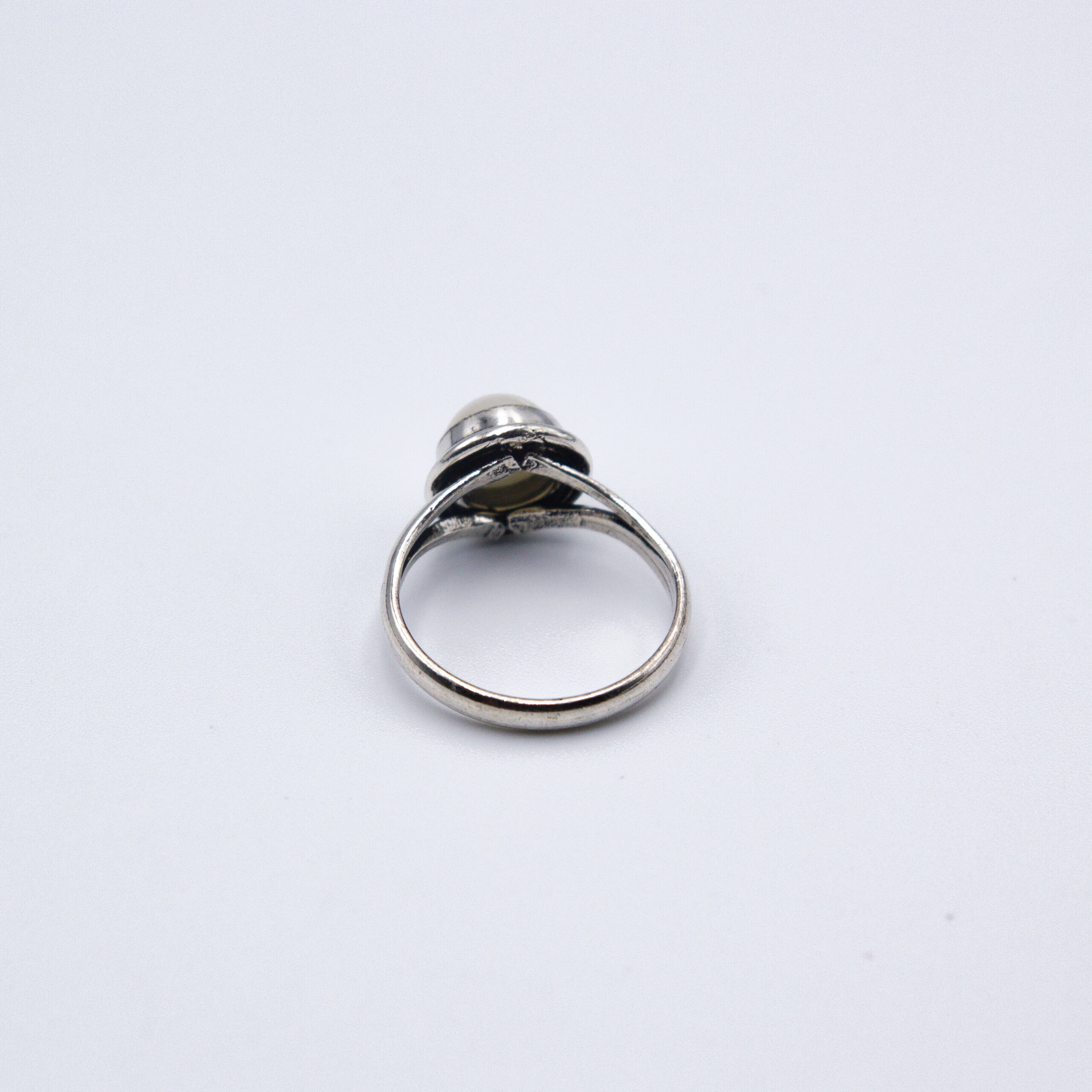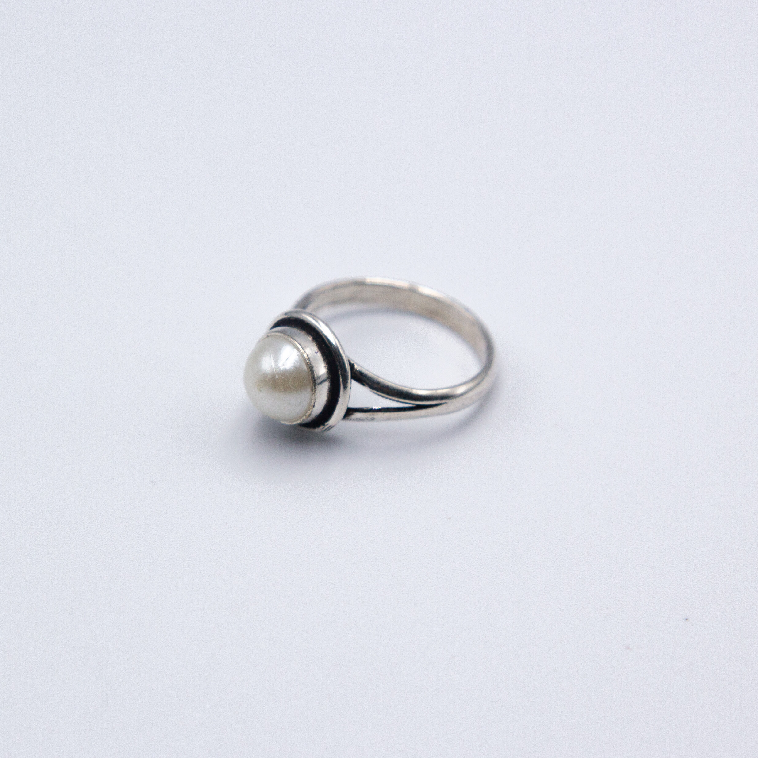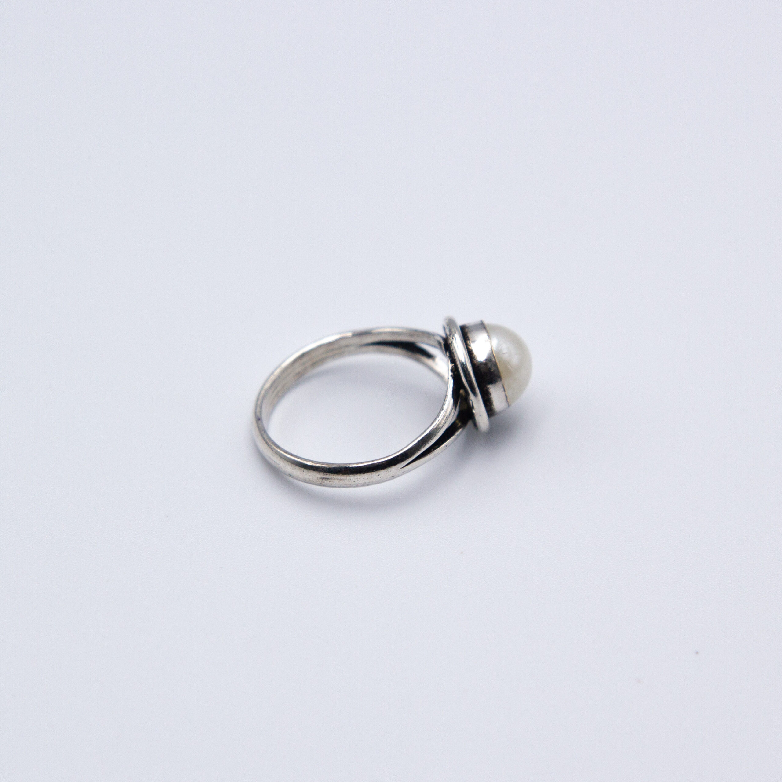 The lustrous pearls are delicately set against the gleaming backdrop of pure silver, creating a mesmerizing contrast that catches the light with every movement. Whether worn as a statement piece or as a subtle accent, this ring adds a touch of refinement to any ensemble.