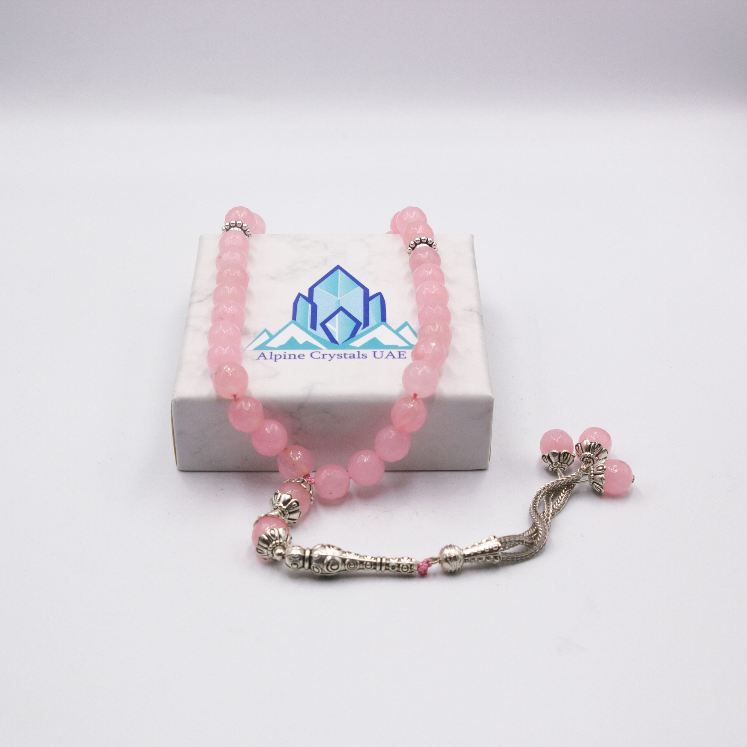Embark on a journey of tranquility with our exquisite Natural Crystal Rose Quartz Tasbih Prayer Beads. Crafted with care, these prayer beads are designed to elevate your spiritual practice and bring a sense of calm to your daily life.
