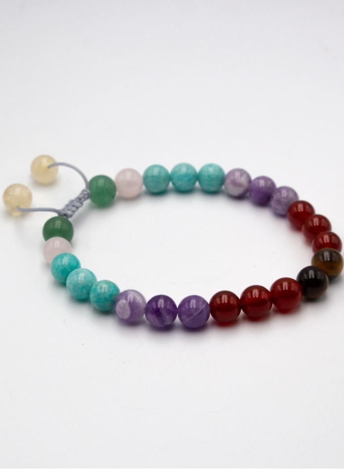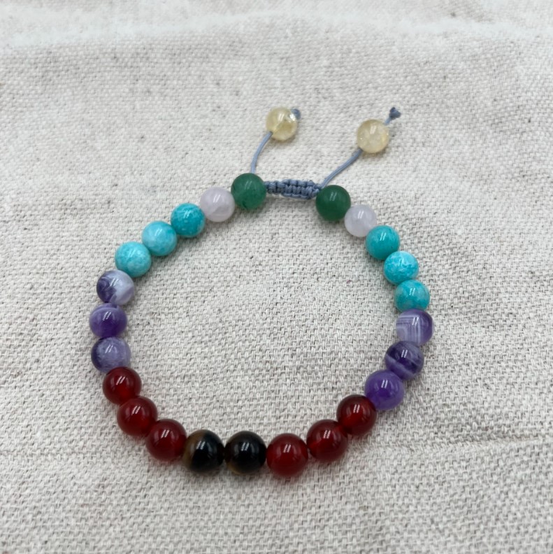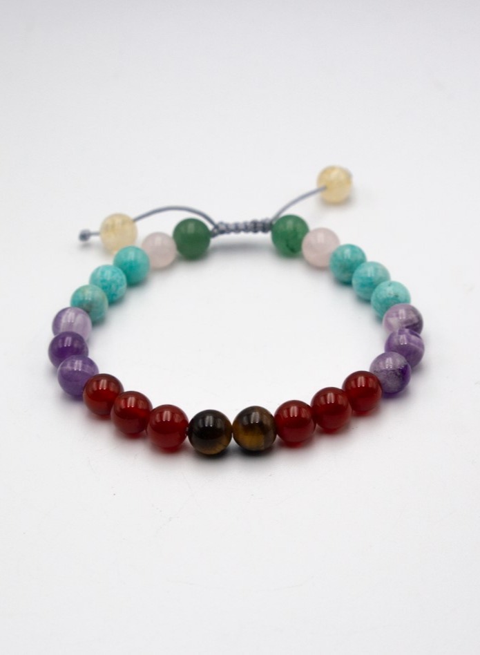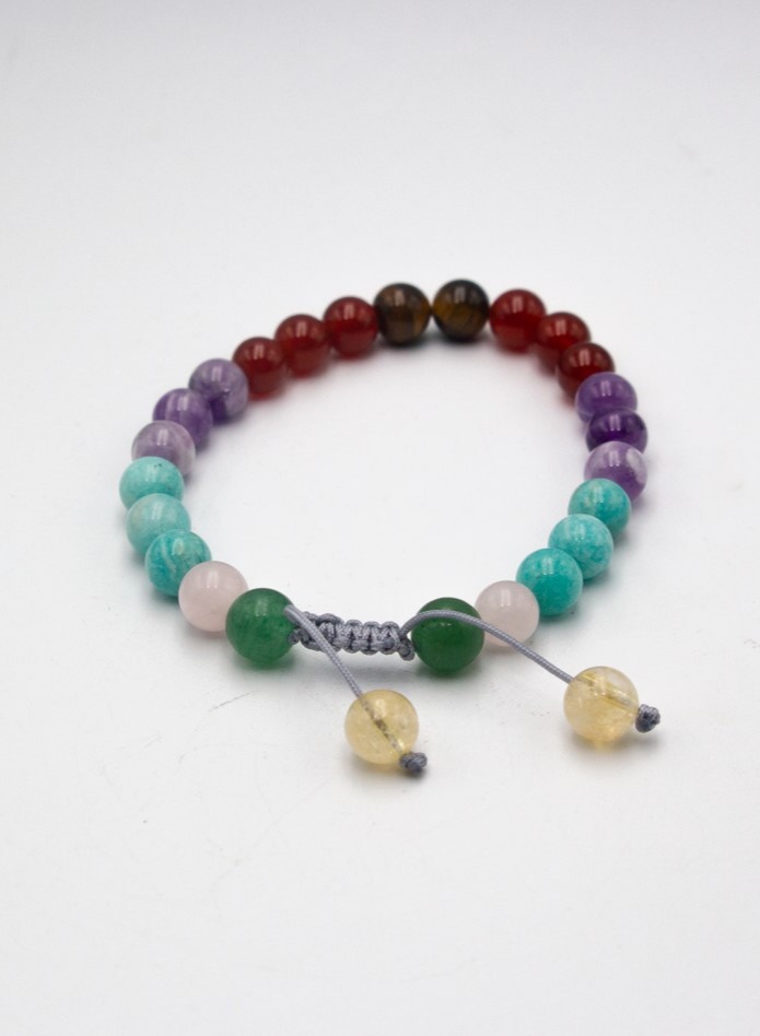 Each bead in the Seven Chakra crystal bracelet corresponds to one of the body’s energy centers: