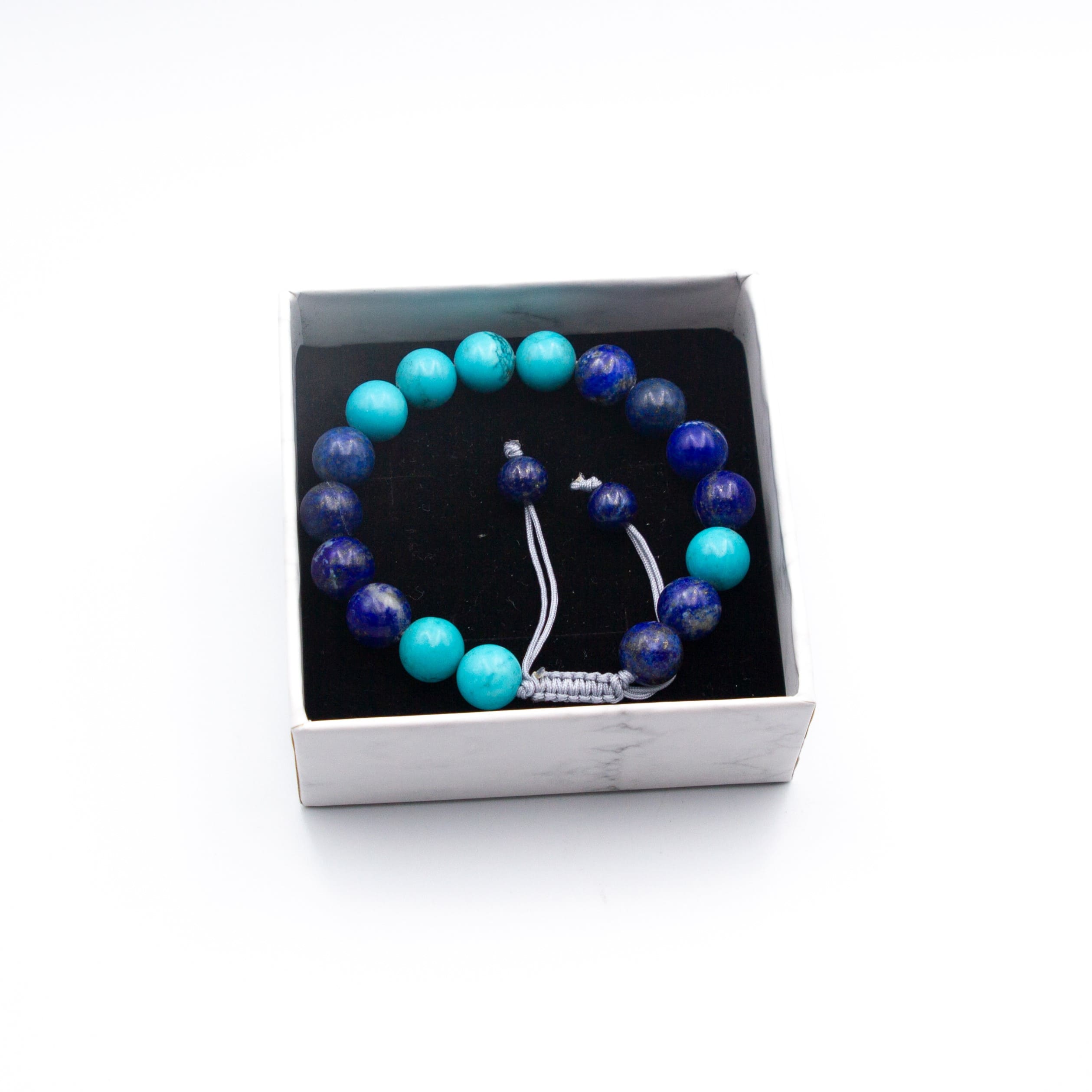 Introducing our stunning Natural Turquoise Crystal and Lapis Lazuli Crystal Bracelet, crafted to elevate your style and spirit. Each bead measures a luxurious 10mm, ensuring a bold yet elegant presence on your wrist.