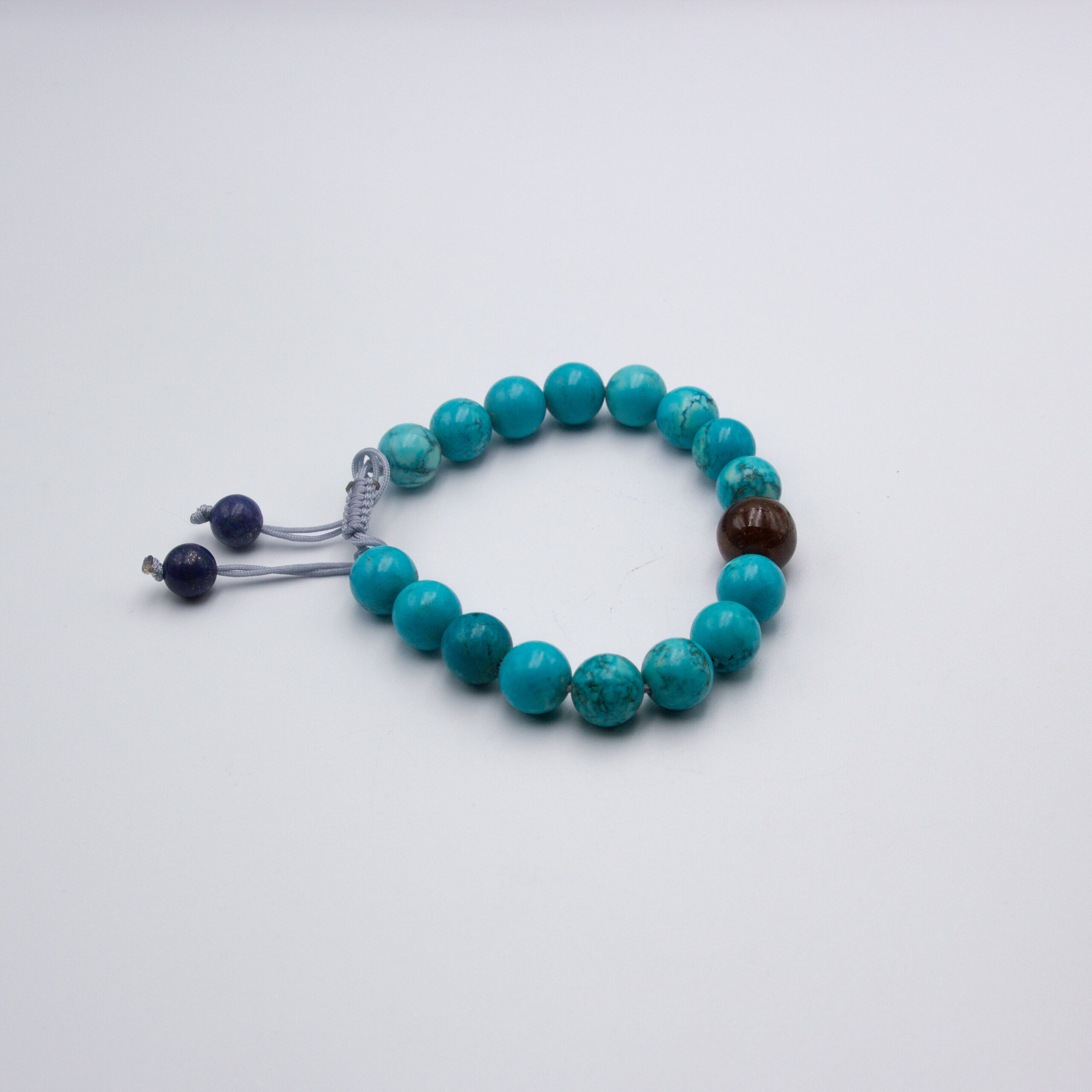 Elevate your style and energy with our Natural Turquoise, Lapis Lazuli, and Yellow Tourmaline Crystal Bracelet. This exquisite piece combines the calming properties of Turquoise, promoting inner peace and self-expression, with the wisdom and truth-seeking qualities of Lapis Lazuli. Enhanced by the vibrant energy of Yellow Tourmaline, known for its confidence-boosting attributes, this bracelet offers a harmonious blend of healing and empowerment. Each hand-selected crystal is thoughtfully arranged to create a balanced and beautiful accessory that not only complements your attire but also uplifts your spirit. Wear it as a daily reminder of your inner strength and authenticity. Embrace the positive vibrations of these natural gemstones and step confidently into your day.