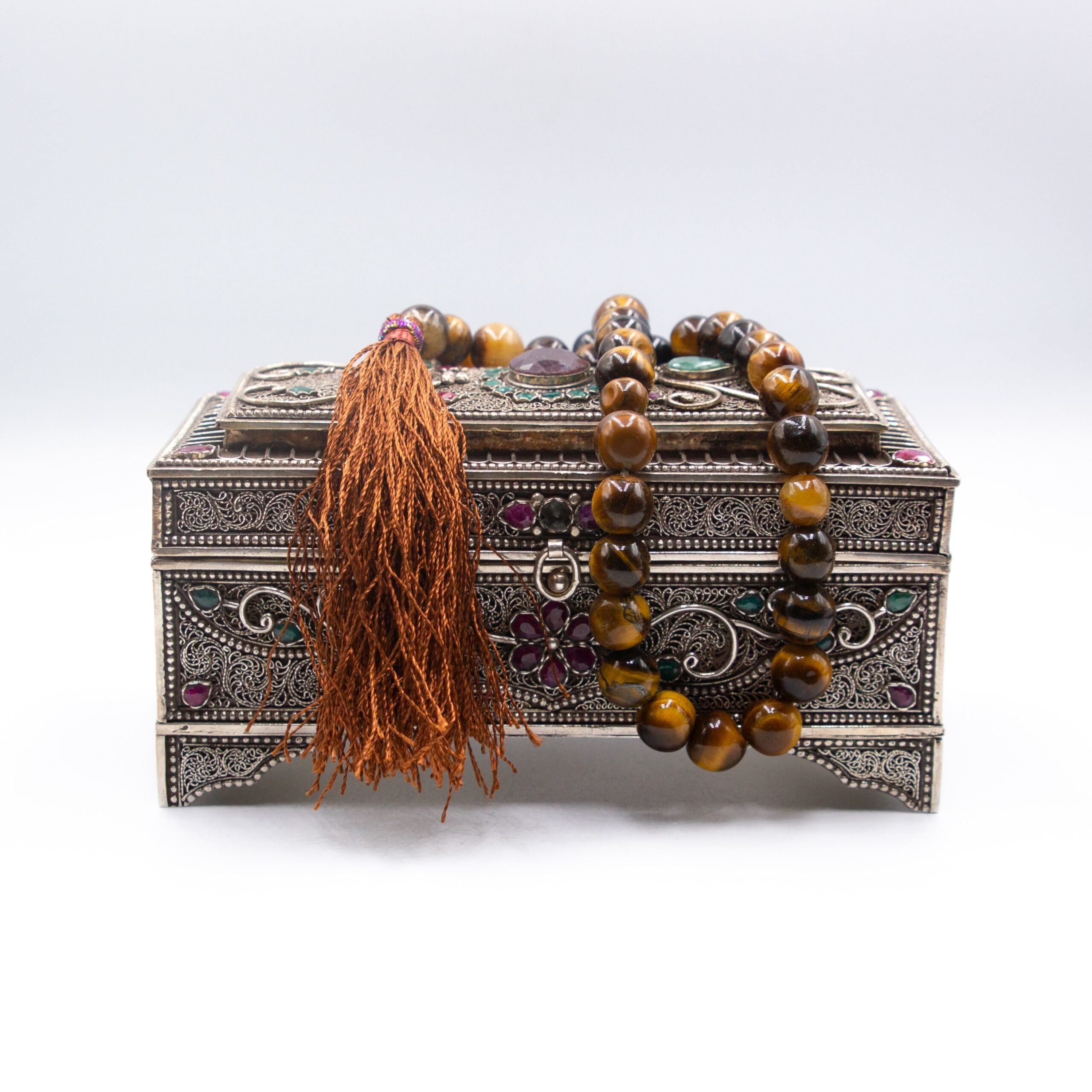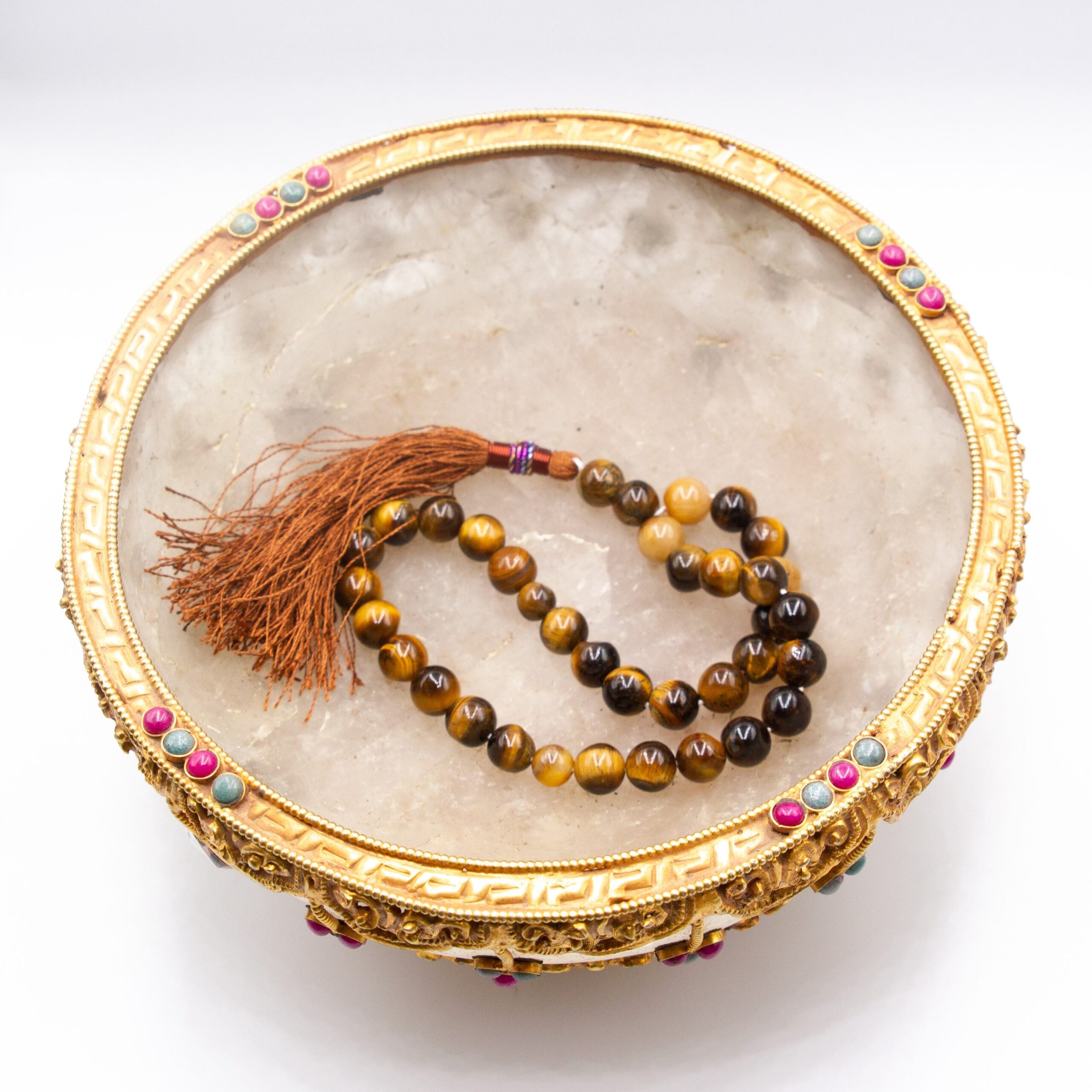 Elevate your spiritual practices with our exquisite Natural Tiger Eye Brown Crystal Tasbih Prayer Beads. Crafted with care, these prayer beads are made from genuine Tiger Eye crystals, known for their grounding and protective properties. Each bead is meticulously handcrafted to ensure quality and durability, providing you with a reliable companion for your prayers and meditation sessions.