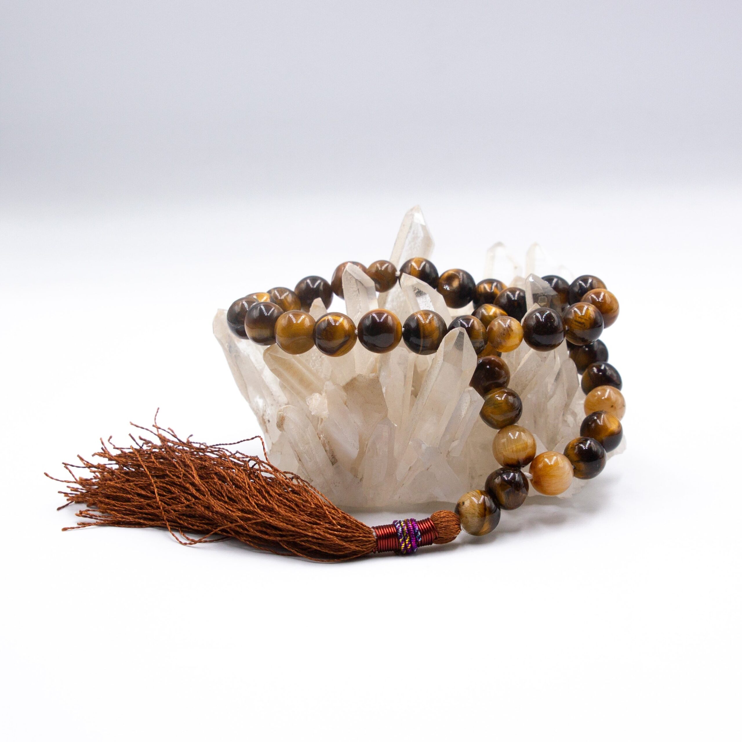 The warm, earthy tones of Tiger Eye crystals bring a sense of calmness and stability, helping you to stay focused and centered during your spiritual journey. With a diameter of 10mm and 33 beads, these prayer beads offer a comfortable grip and smooth texture, making them ideal for daily use.